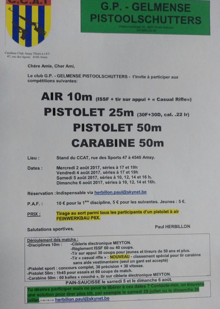 PS: Deutsche Schützen brauchen für Belgien einen Internatlionalen Feuerwaffenpass für die Spopi, Freie und KK Gewehr!!!