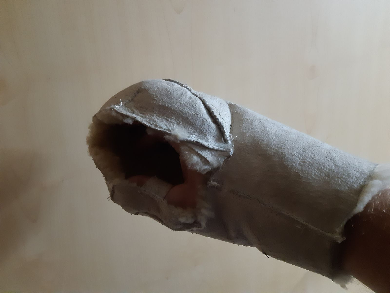 • Zwar habe ich kein Bild einer Freien zu bieten, aber ich kann mich auch noch sehr gut an das Training im Winter bei Minusgraden erinnern. Ich habe mal meinen dafür genähten "Schießhandschuh" aus dem Keller gekramt: