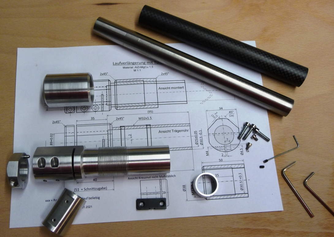 als Altersteilzeitler verfügt man einfach über etwas mehr an freier Zeit, Corona tut sein übriges. Wie schon mal erwähnt baue ich mir einen Aluschaft mit Laufklemmung. Nur ist dieses Projekt sehr umfangreich und deshalb habe ich mir zur Abwechslung jetzt eine Laufverlängerung mit Tuner, also Bloop Tube mit Barrel Tuner auf Neudeutsch gefertigt.