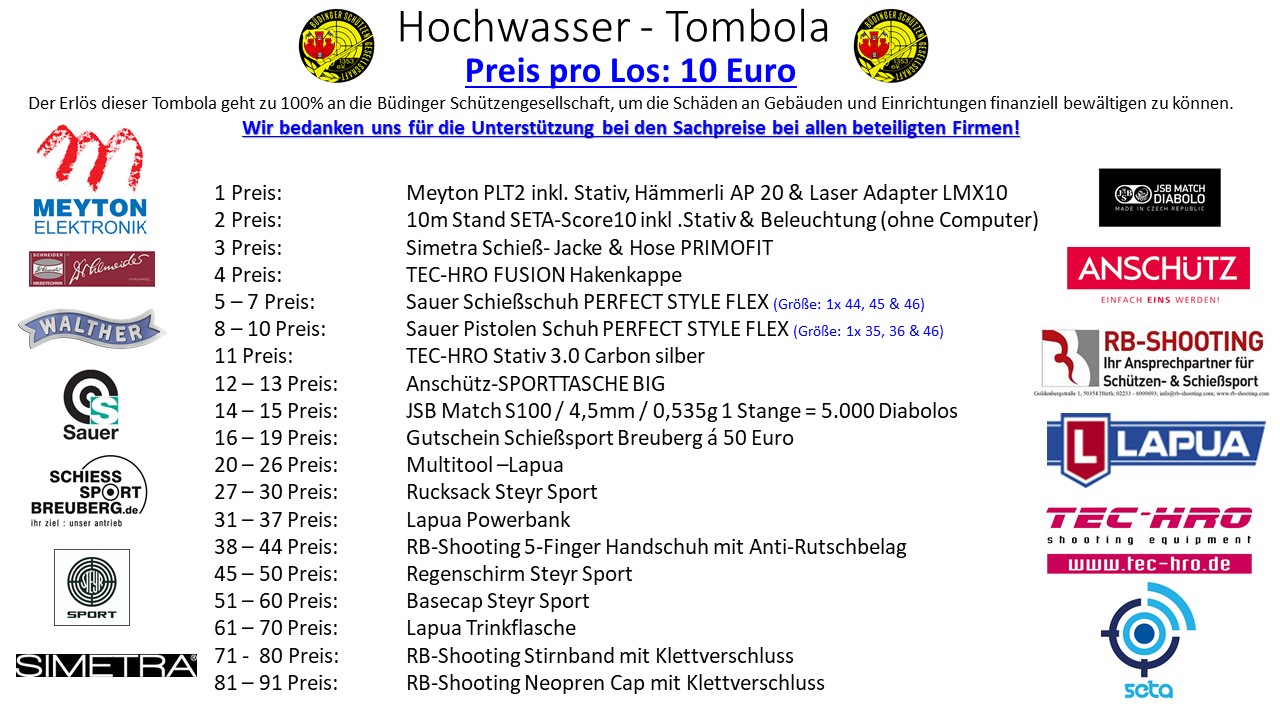 Mit jedem Los hilfst du unserem Verein und bringst uns einen Schritt weiter, den Schießbetrieb bald wieder aufnehmen zu können.