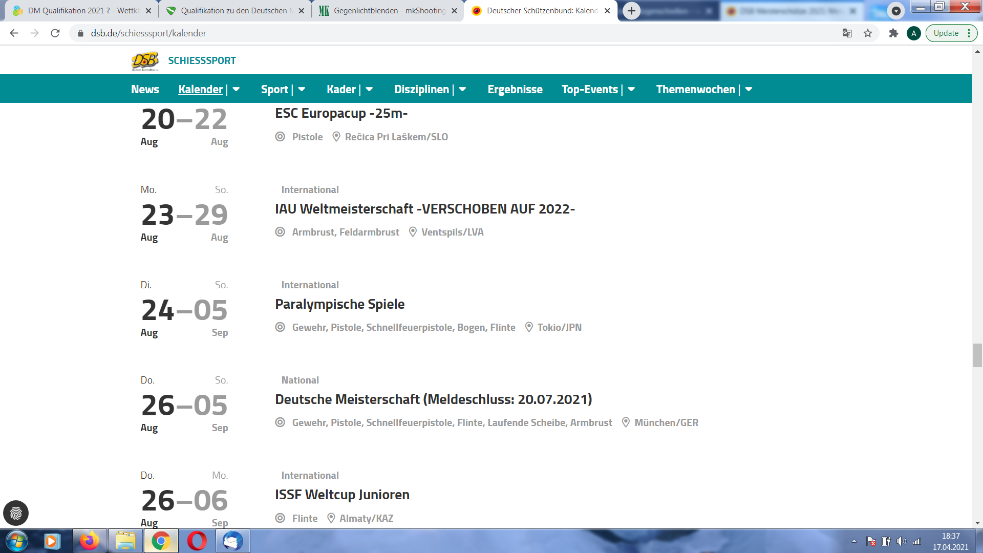 Wie Erzwo schon schrieb, gibt der DSB den LV viel Freiraum für die Ermittlung/Nennung der Qualiergebnisse ( Qualifikation zu den deutschen Meisterschaften ). Problem ist aber, dass in vielen Bundesländern, so auch in NRW, die Kugelstände (incl. Druckluft) komplett zu sind. Und in vielen Regionen sehe ich da auch keine Änderung in den nächsten 4-8 Wochen, wenn denn die vorgesehenen Änderungen des Infektionsschutzgesetzes tatsächlich umgesetzt werden und die Überschreitung der 100er Inzidenz einen Lockdown in vielen Bereichen, u.a. auch im Sport nach sich zieht. Insofern wird es da kaum aktuelle Qualiergebnisse geben können. Meldeschluss für München ist der 20.07. Man muss also z.B. auf "alte" Ergebnisse zurückgreifen, ggf. die Melderergebnisse zur seinerzeit vorgesehenen LM.