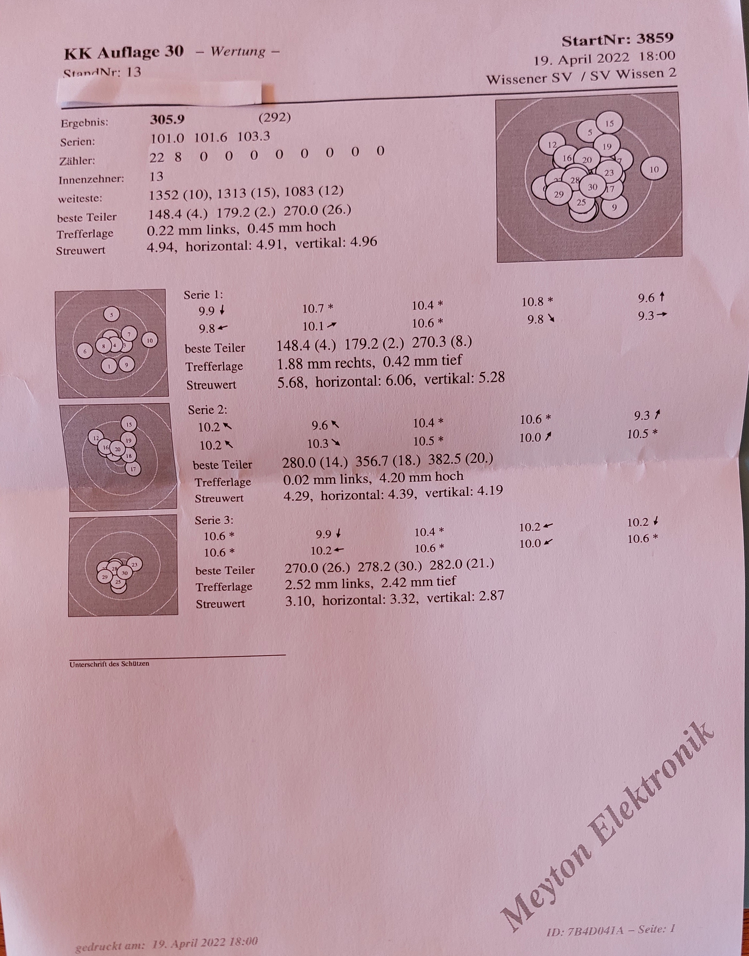 Da hat mich ne 7 in der 2. Serie geärgert und die 10´er wollten erst wieder in der 3. Serie fallen.