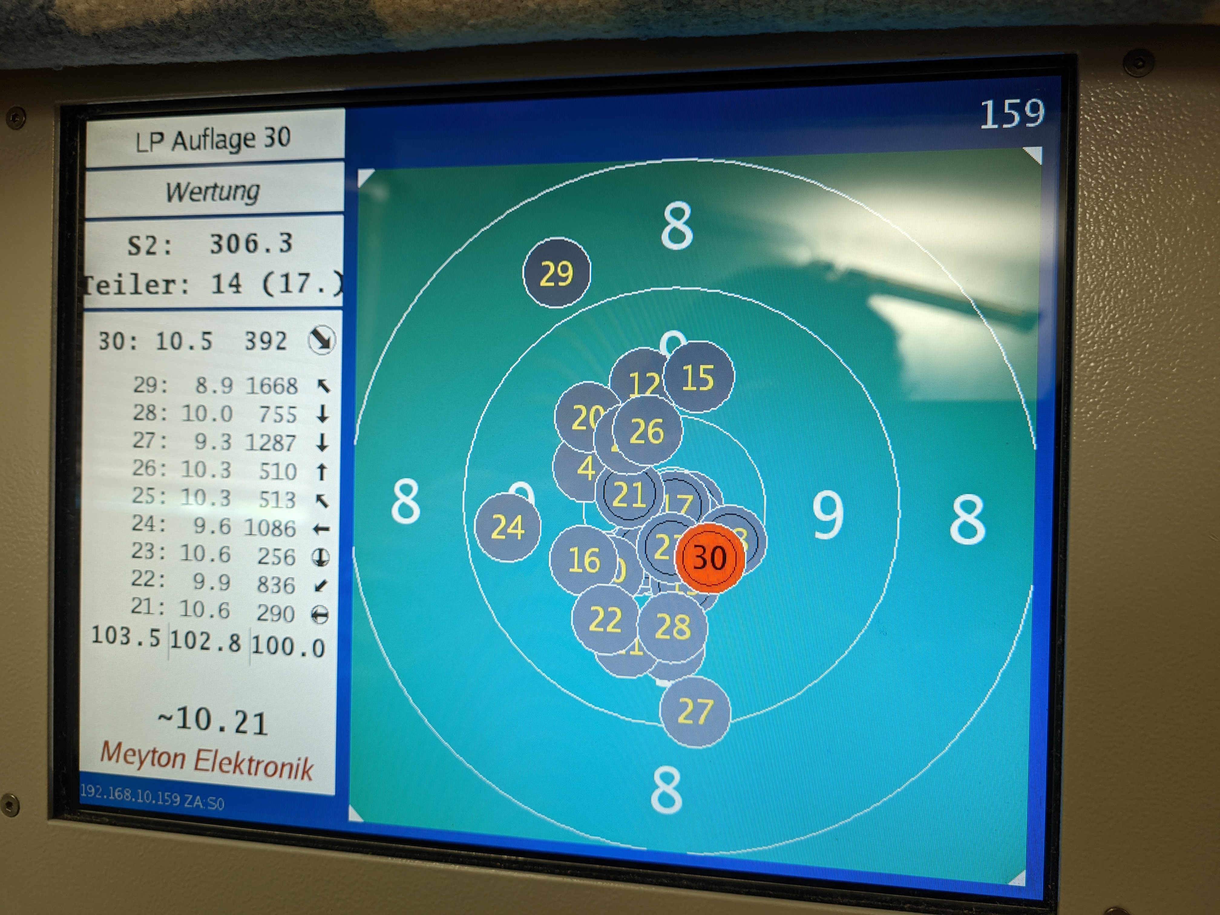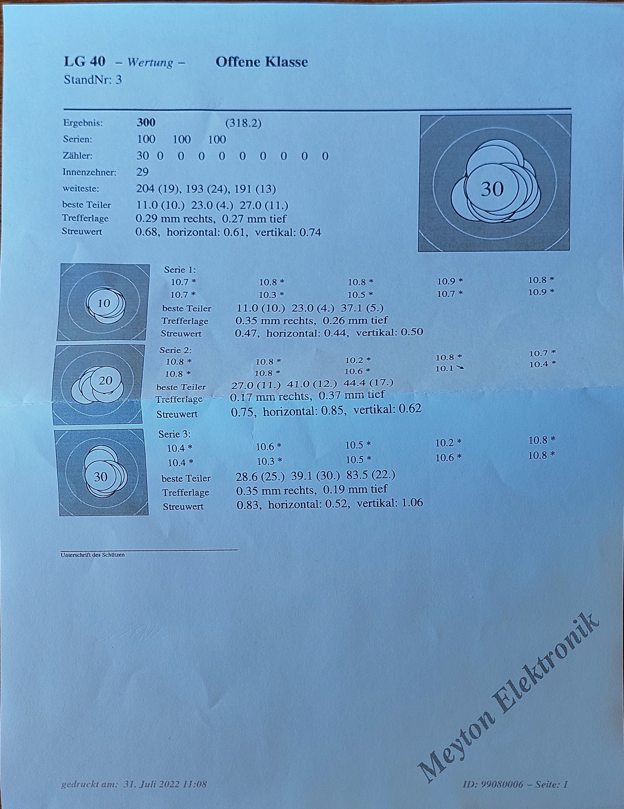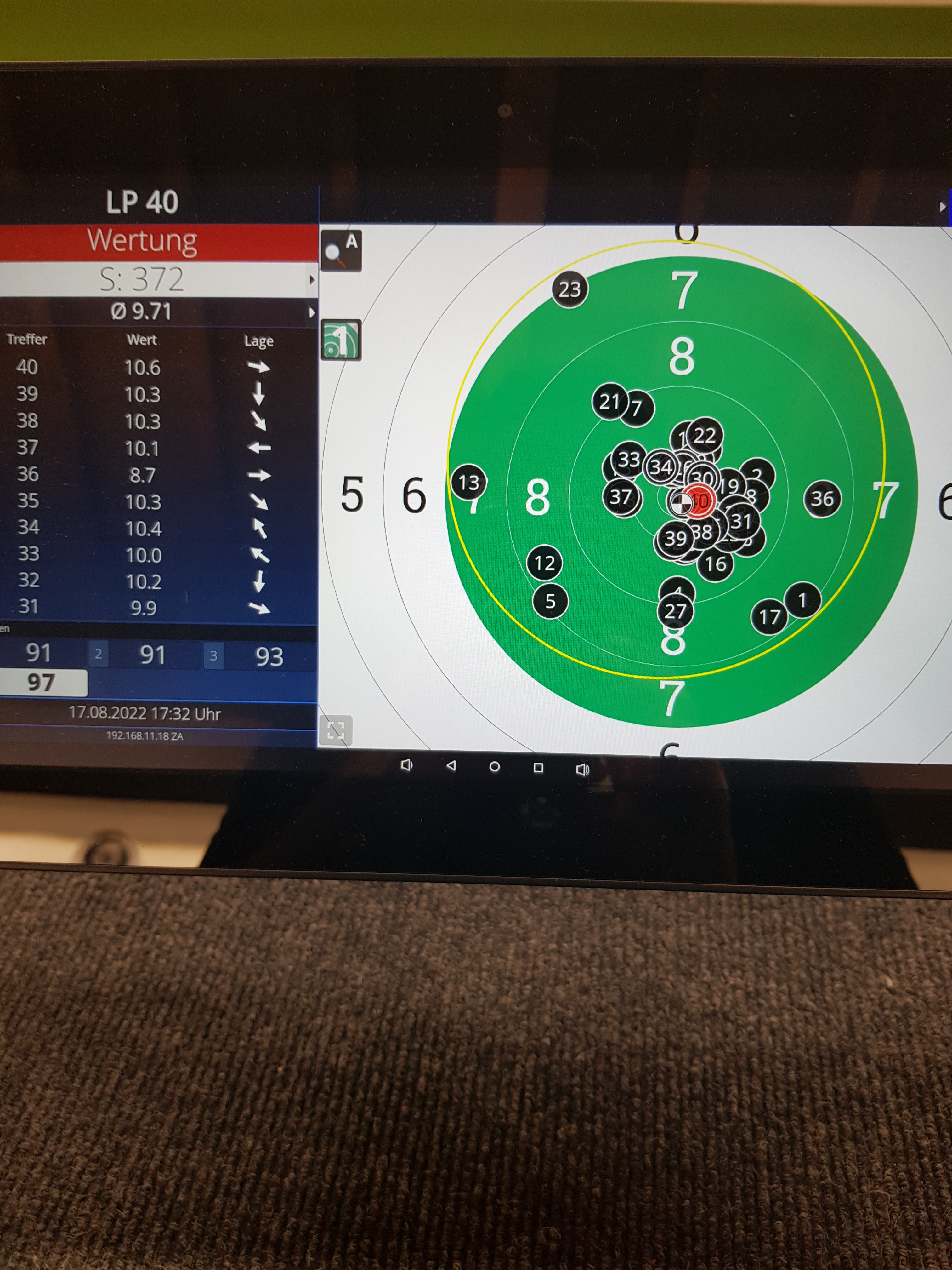 wenn ich voll konzentriert bin, läuft es, aber sobald die Gedanken bisschen abschweifen, fallen die 8er. War mir gar nicht so bewusst, aber wenn ich das so untereinander sehe, sollte ich vielleicht mal eine Pause nach 20 Schuss einplanen.