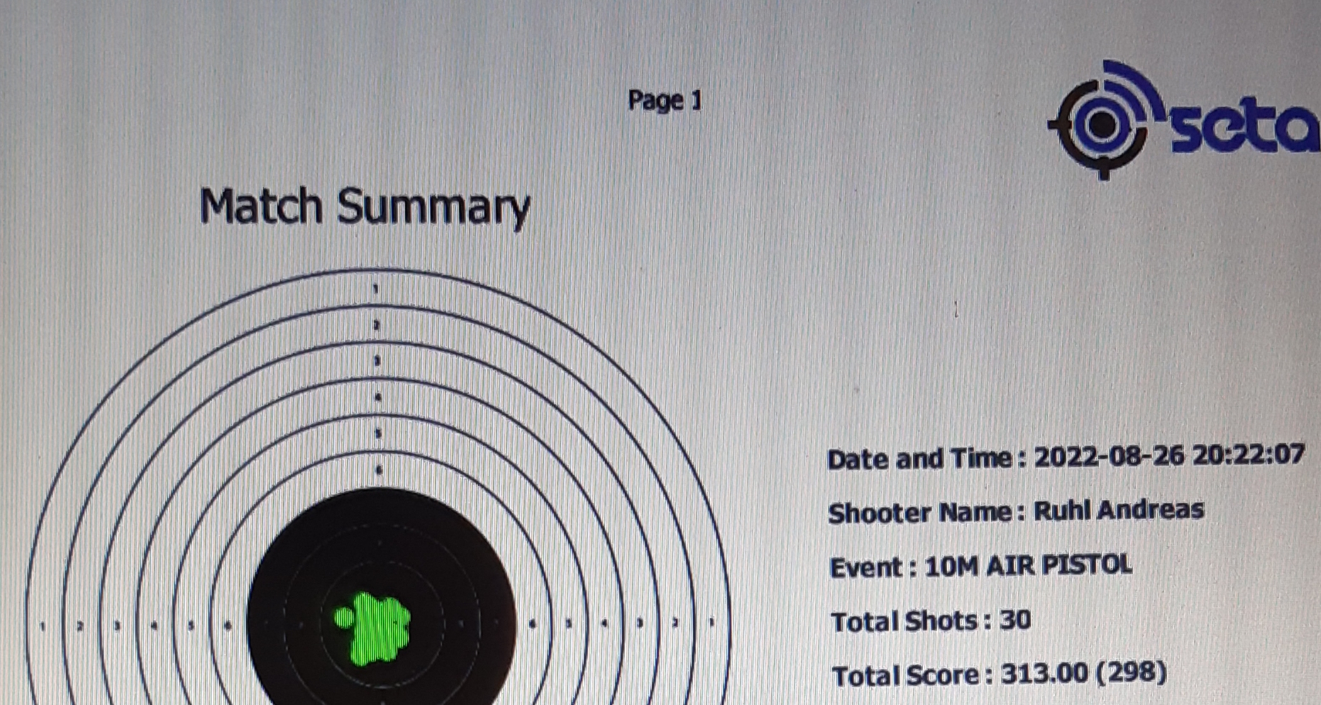 Mein Ergebnis für den August mit der Luftpistole sind: