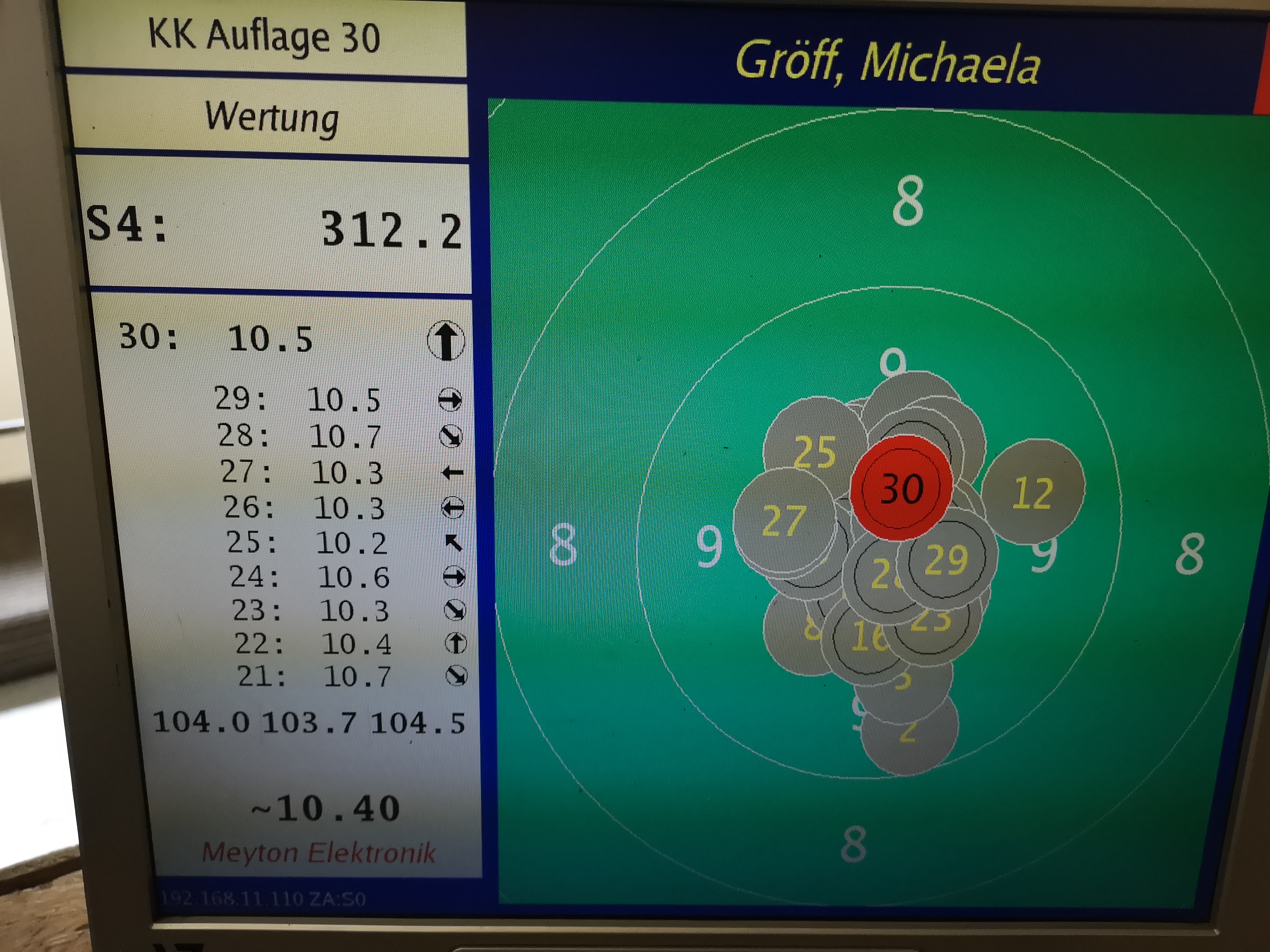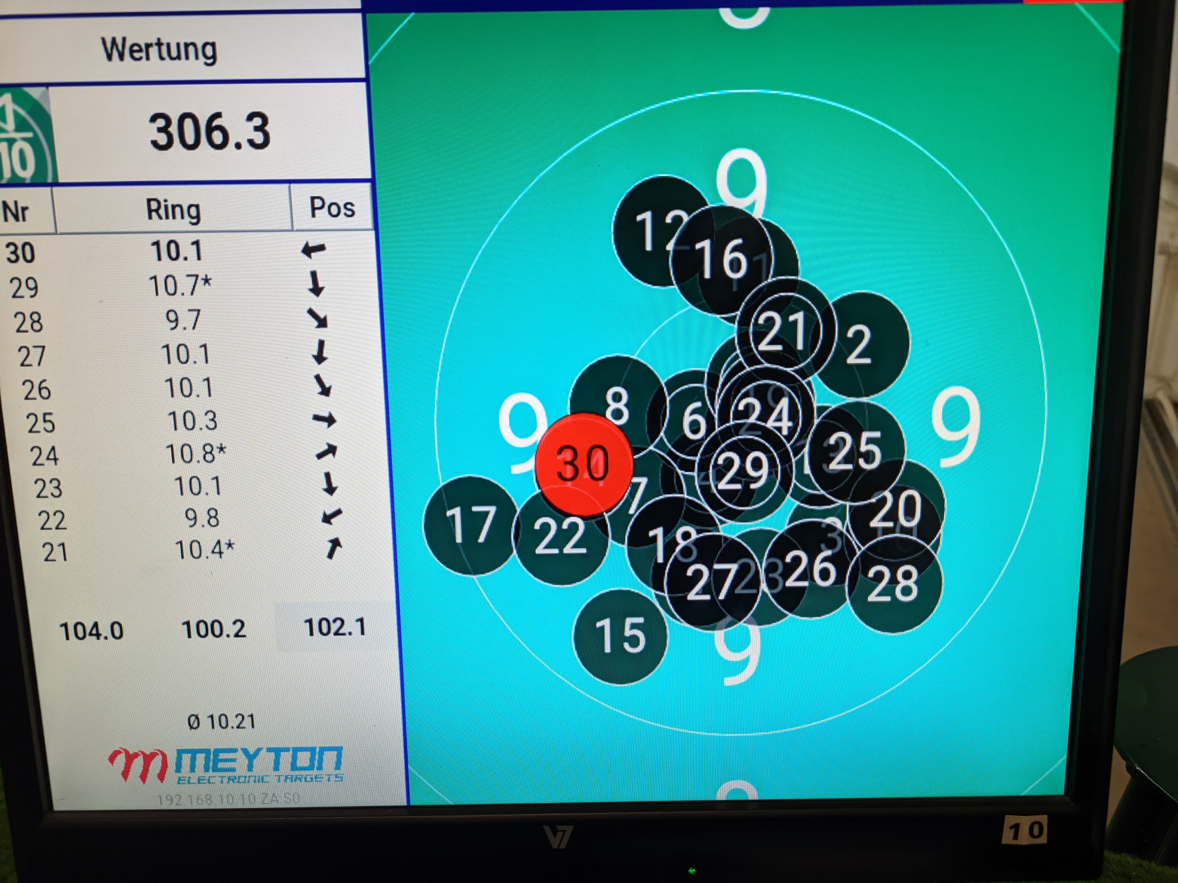 Die Auswertung erfolgt in ganzen Ringen mit dem unbewaffneten Auge. 10tel Wertung könnte ich nur über die TargetScan-App liefern.Schöne Grüße, Rainer