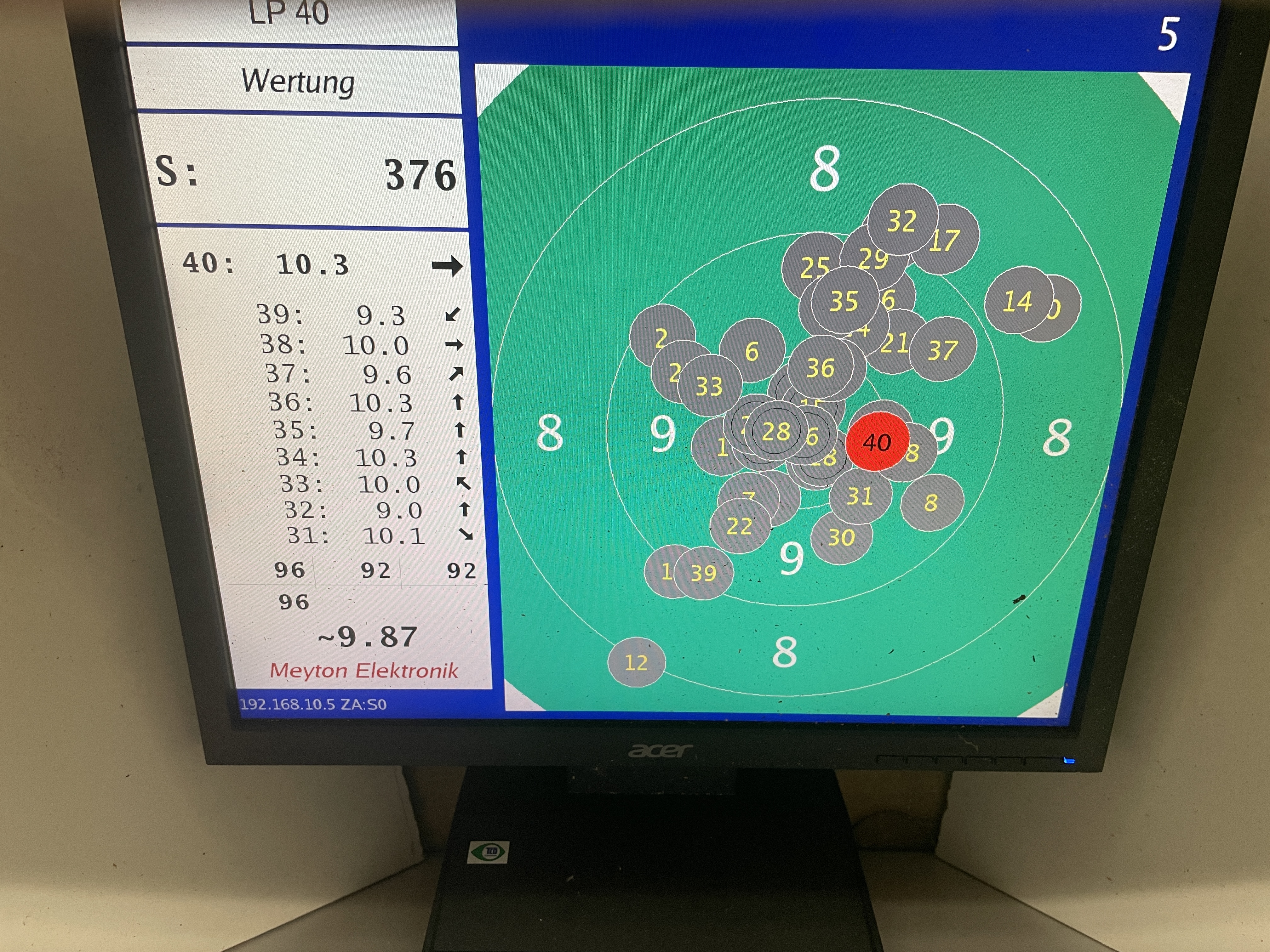 LP frei: 91, 92, 98, 94 = 375 Ergebnis vom 2. Tag Vereinspokal. BM ging leider ziemlich in die Hose.