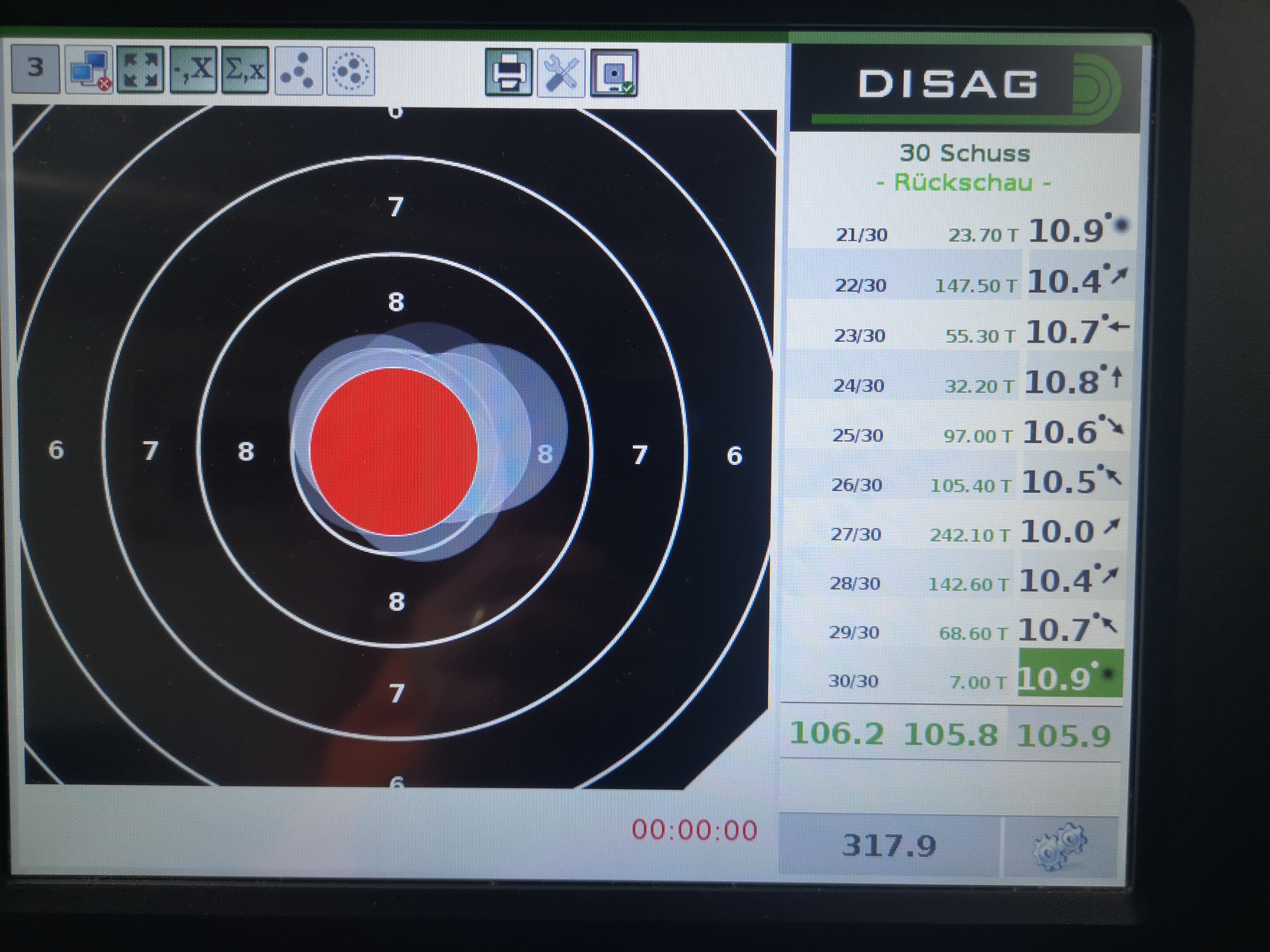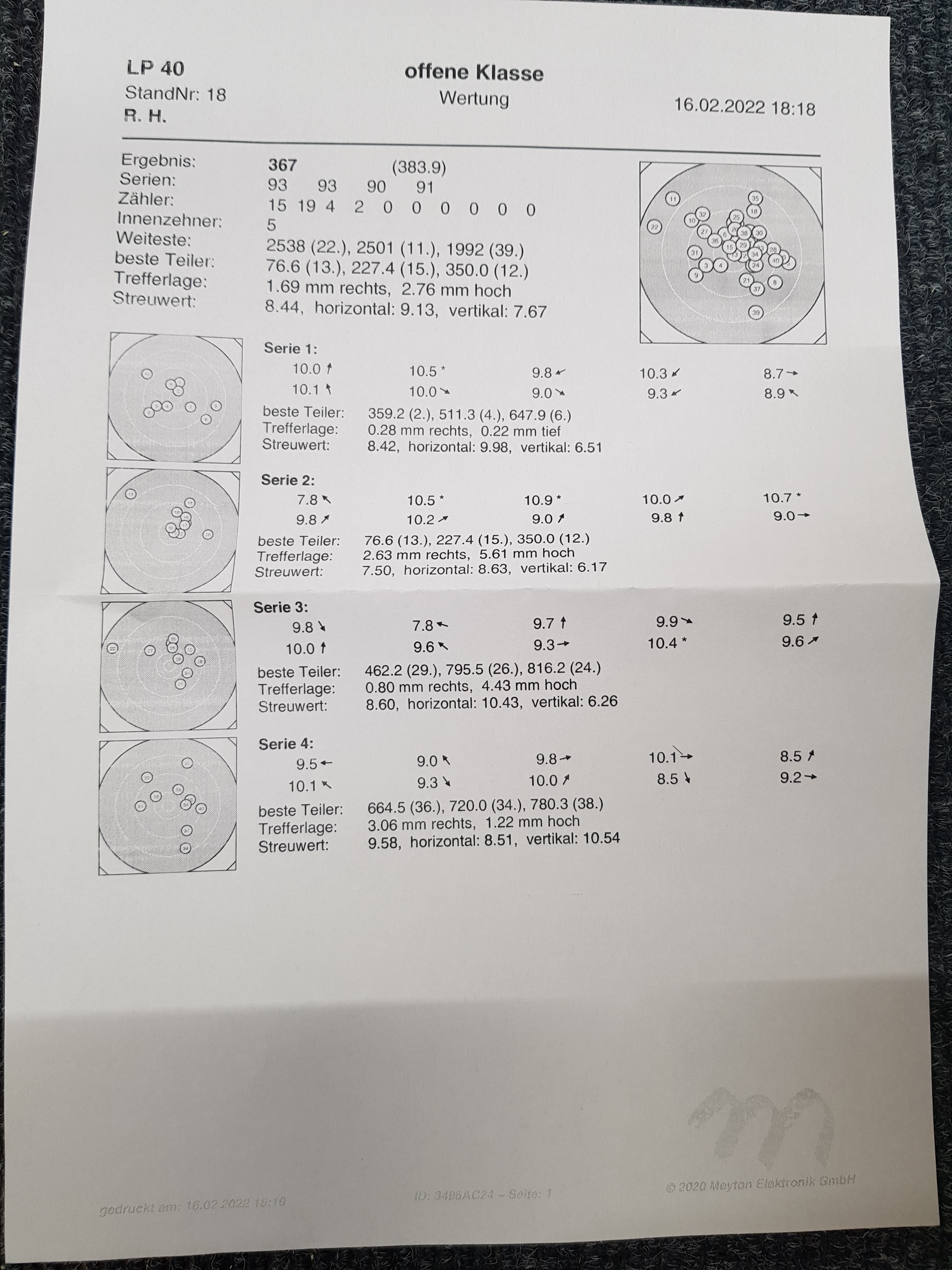 Auch mit der Luftpistole wollten mir die Zehner einfach nicht zufliegen und ich komme hier auf 360 Ringe.