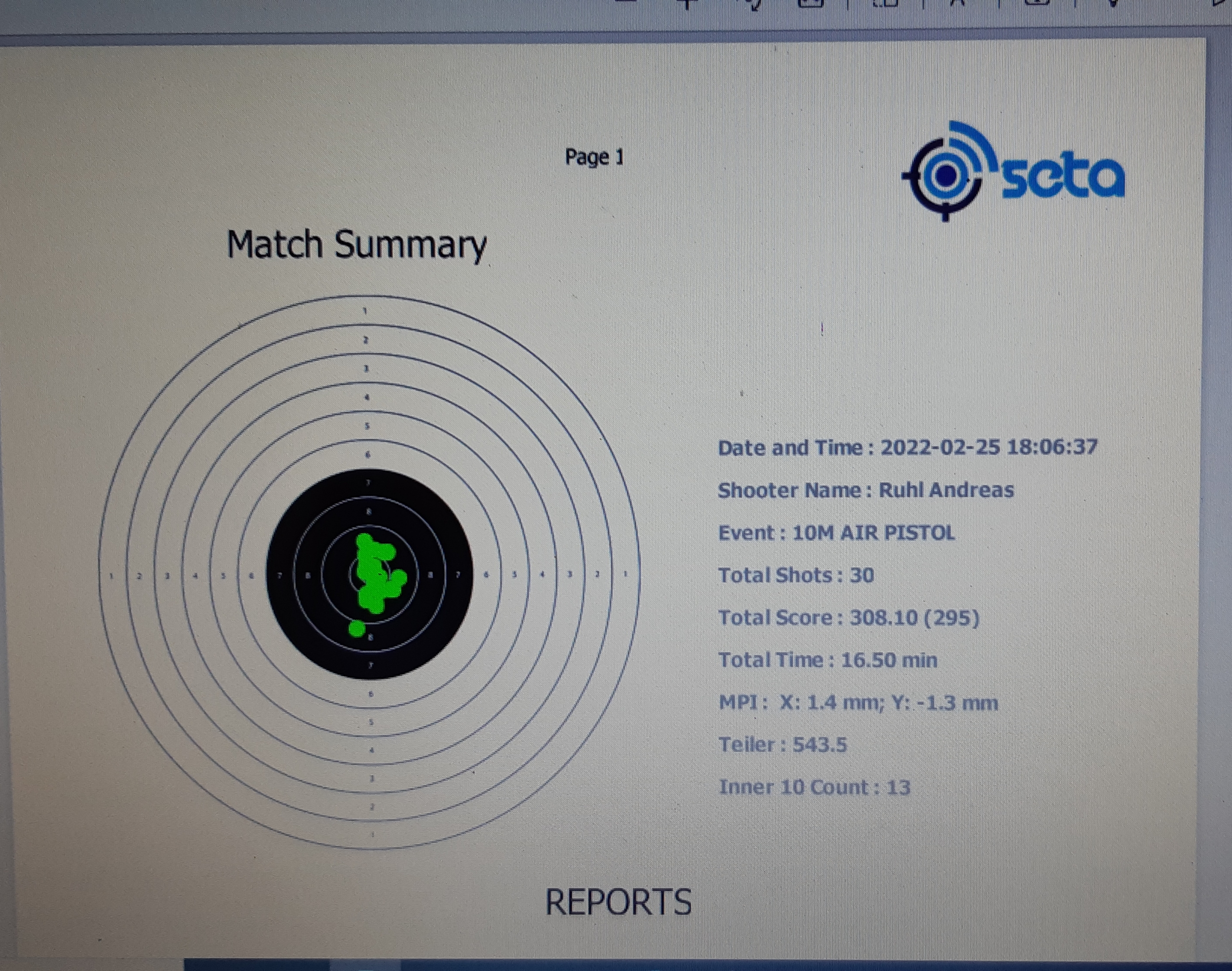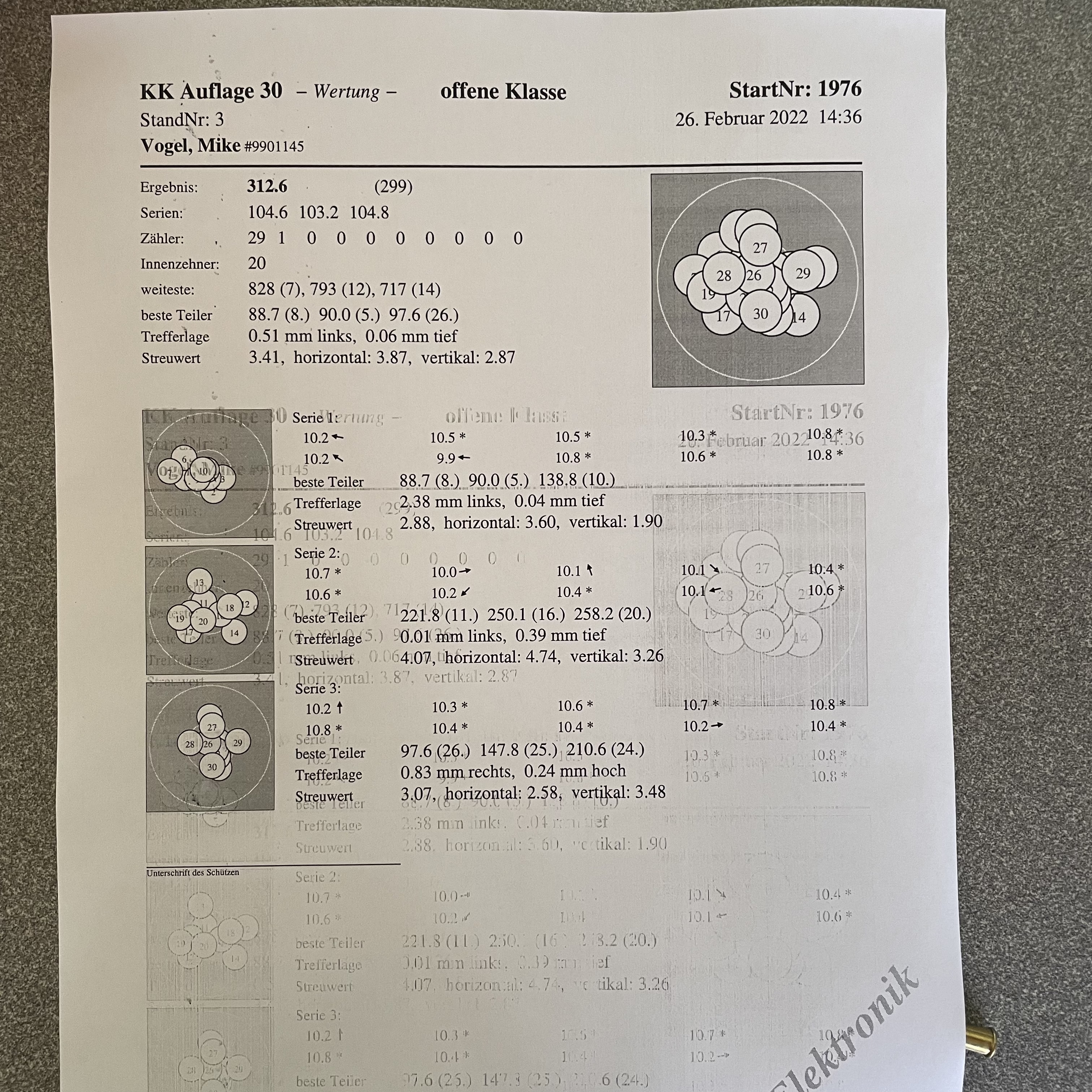 ich habe jetzt endlich die SpoPi aus dem Winterschlaf geholt und melde für Januar noch eine Ergebnis nach. Hab als Test gleich mal ein "Vollprogramm" geschossen - und wenig überraschend sah man vorn in der Präzision die "Lernkurve" bis ich mich wieder an den Abzug gewöhnt hatte - und im Duell wurde es hinten raus doch ziemlich zäh.... Da muss ich meine Kondition erst wieder aufbauen. Aber insgesamt bin ich mit dem Ergebnis zufrieden. Ich melde hier mal jeweils die ersten 15 Schuss.