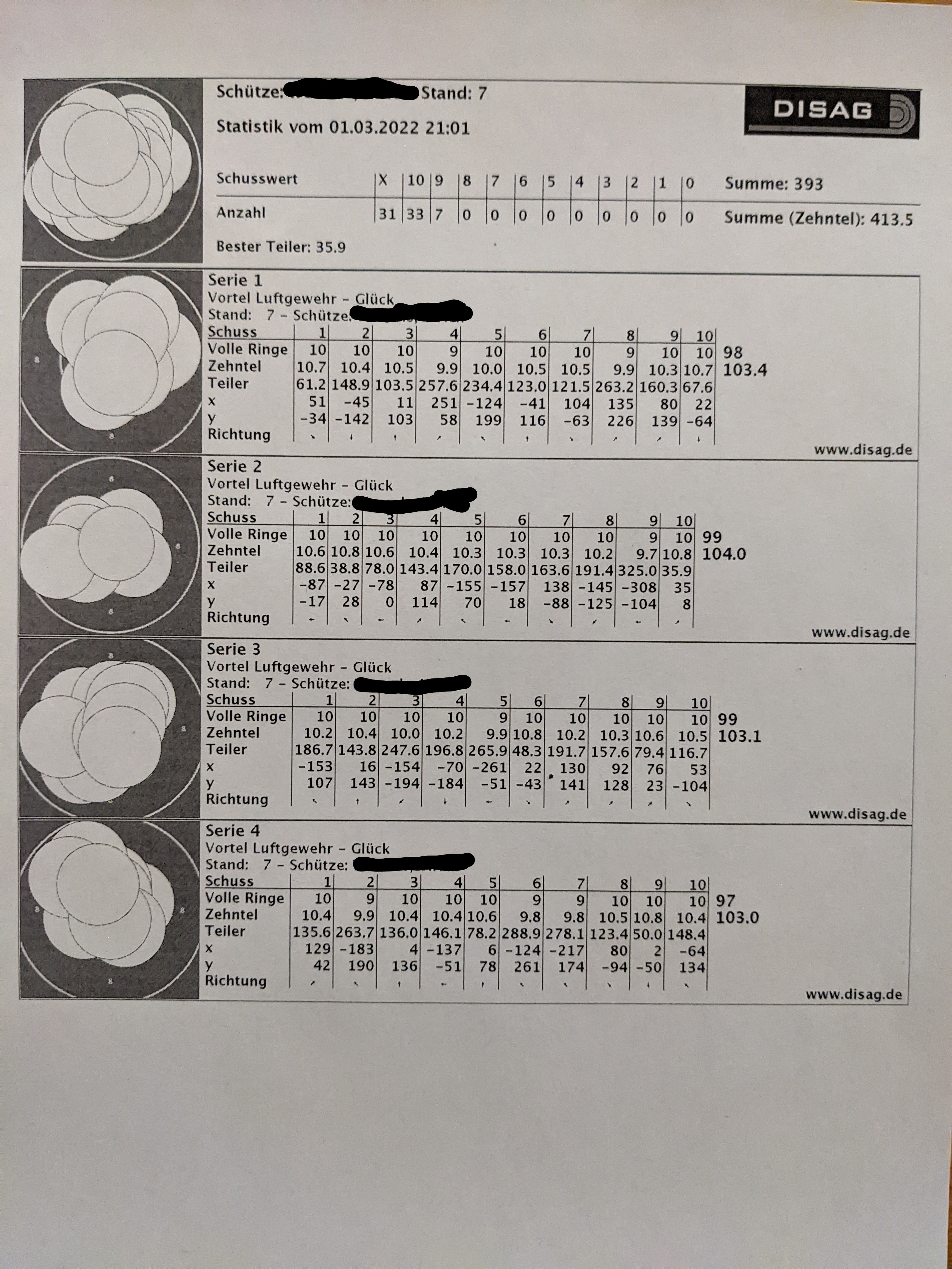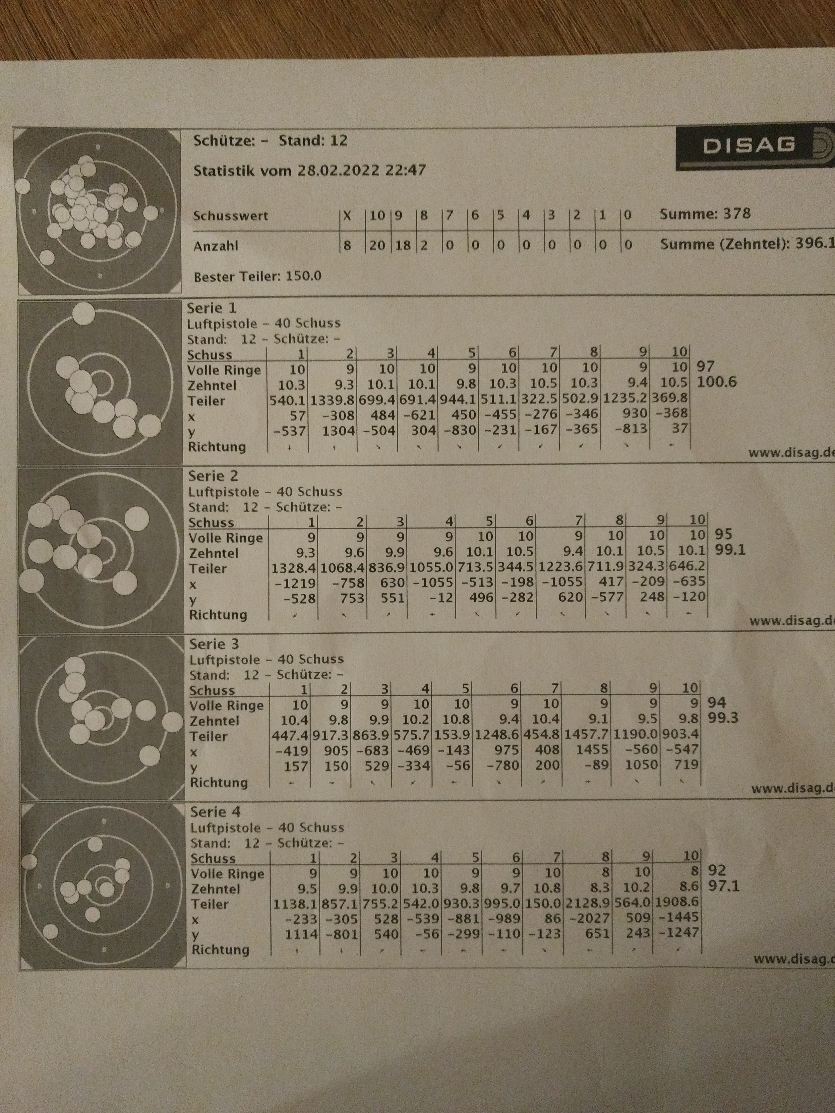 Mit dem Luftgewehr bin ich Anfang des Monats noch gerade so auf 376 Ringe gekommen, das wurde im Laufe des Monats immer schlimmer :(