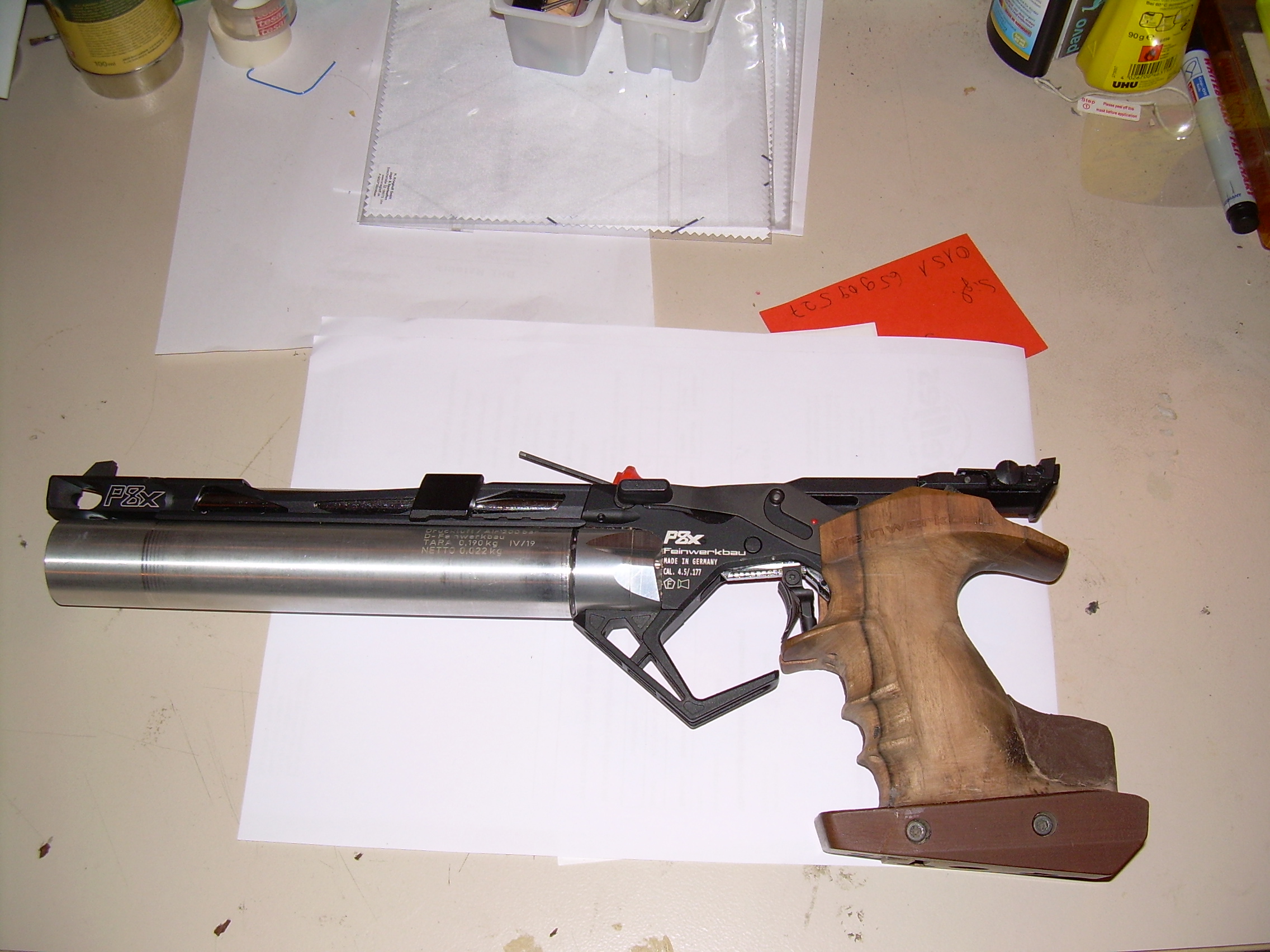Ich habe damals mit FWB LP 65 angefangen und dann eine LP100 bekommen. Bei der P8X macht es Feinwerkbau so, wie bei der LP 100, dass das hintere Teil, bei der P8X ein Dreieck ist, dass die Kimme abdeckt, dass dieses Teil nicht matt lackiert ist, sondern mehr glänzend. Dies störte mich schon an der LP100, da die Reflexionen doch recht groß ist. Das lustige ist, dass das Licht teilweise durch die Kimme durchscheint, von diesem Teil reflektiert wird und mich doch ein wenig stört.
