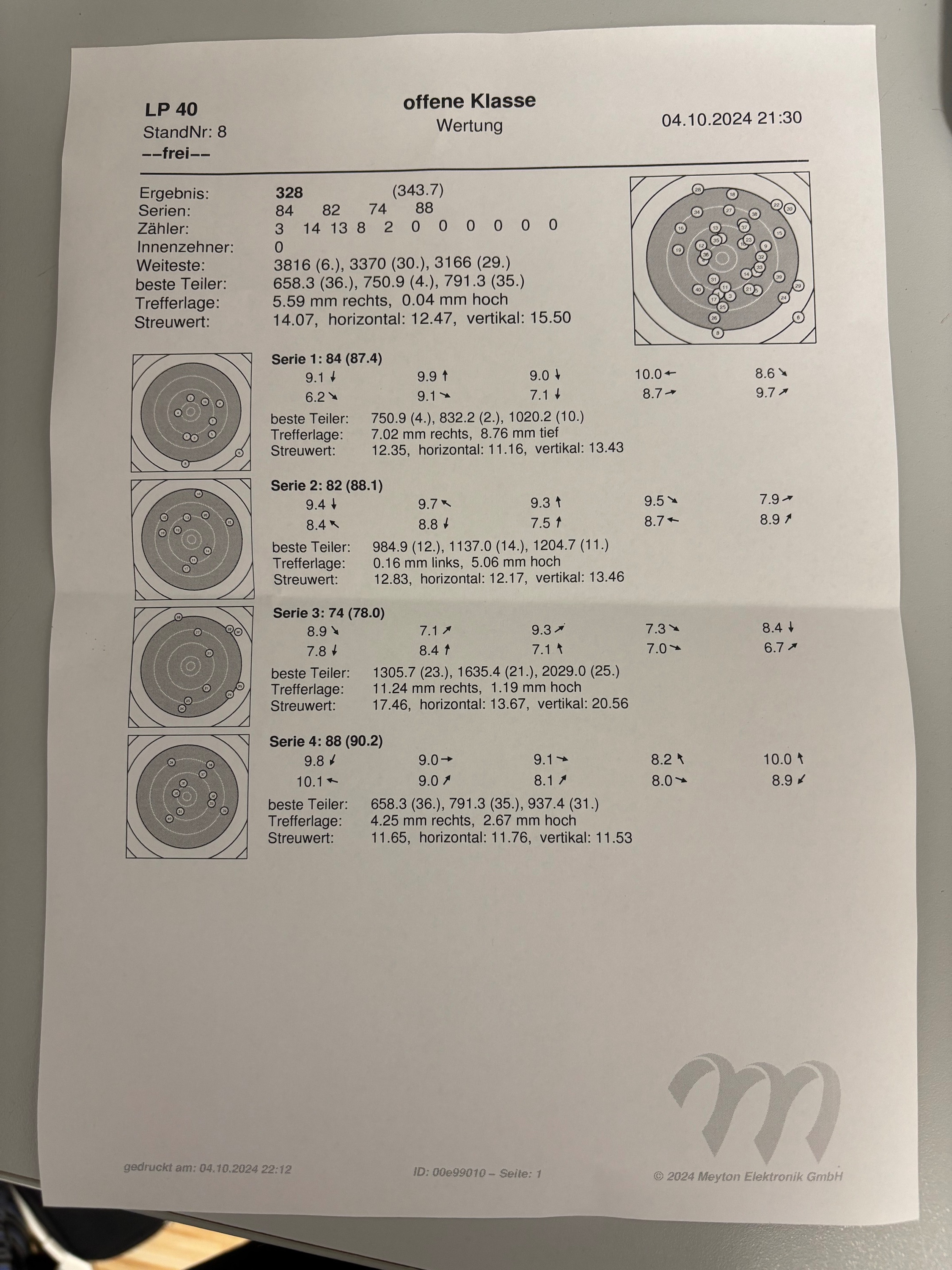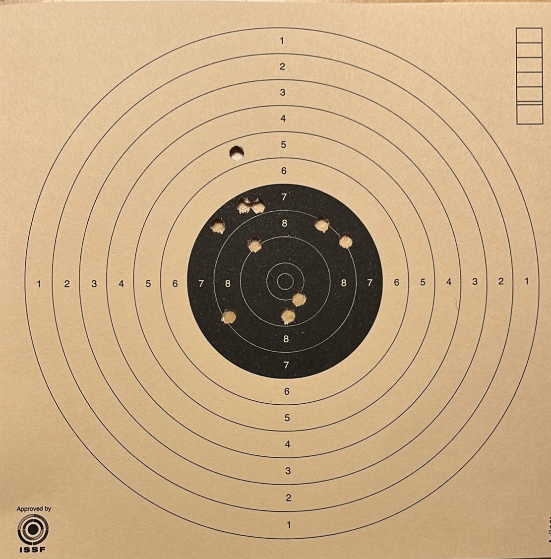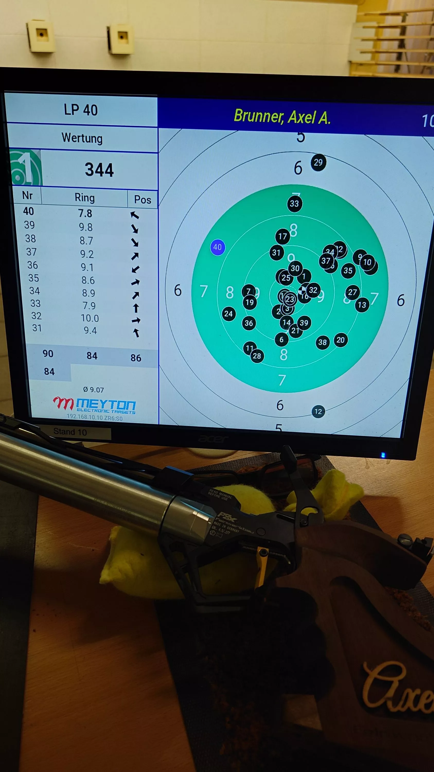 Im Moment habe ich mich soweit verbessert das 70-90% der Schüsse das schwarze treffen. Manchmal auch alle zehn. Meistens geht der erste oder der zehnte „ins weiße“ 🤣