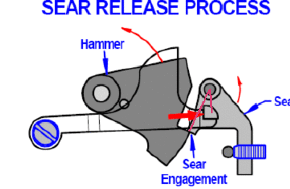 Im Video wird nach der Reduzierung des Vorzugswegs weder dessen Weg (in mm) noch das Ausmass der Rast (in Zehntel-mm) erwähnt. Also kein Hinweis was Walther noch für zulässig hält.Der nach hinten laufende Schlitten drückt den Hahn nach unten wobei die Kanten der Klinken reibend aneinander vorbeilaufen.