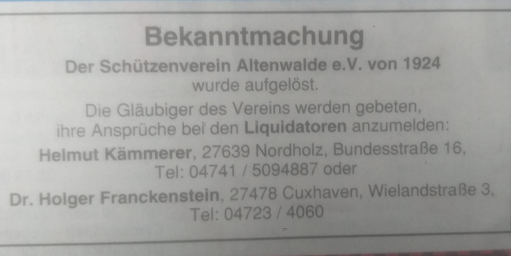 Ende Aus und Vorbei für einen Schützenverein?