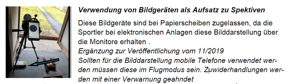 "Außer ärztlich verordneten Hörhilfen dürfen von den Schützen keine elektrischen oder elektronischen Geräte im Schützenstand verwendet werden.