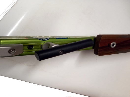 Anbauten am Gewehrschaft, die quergestellt werden können, um das Gewehr darauf zwischen den Schüssen abzulegen und/oder als Haltegriff für die nicht abziehende Hand verwendet werden kön- nen, sind nicht zulässig. Dies gilt für Luftgewehre und Standard- gewehre. Anbauten, die parallel zum Schaft verlaufen sind unter Einhaltung der Vorderschaftmaße zugelassen (Koffergriff bei Auflagewettbewerben.)