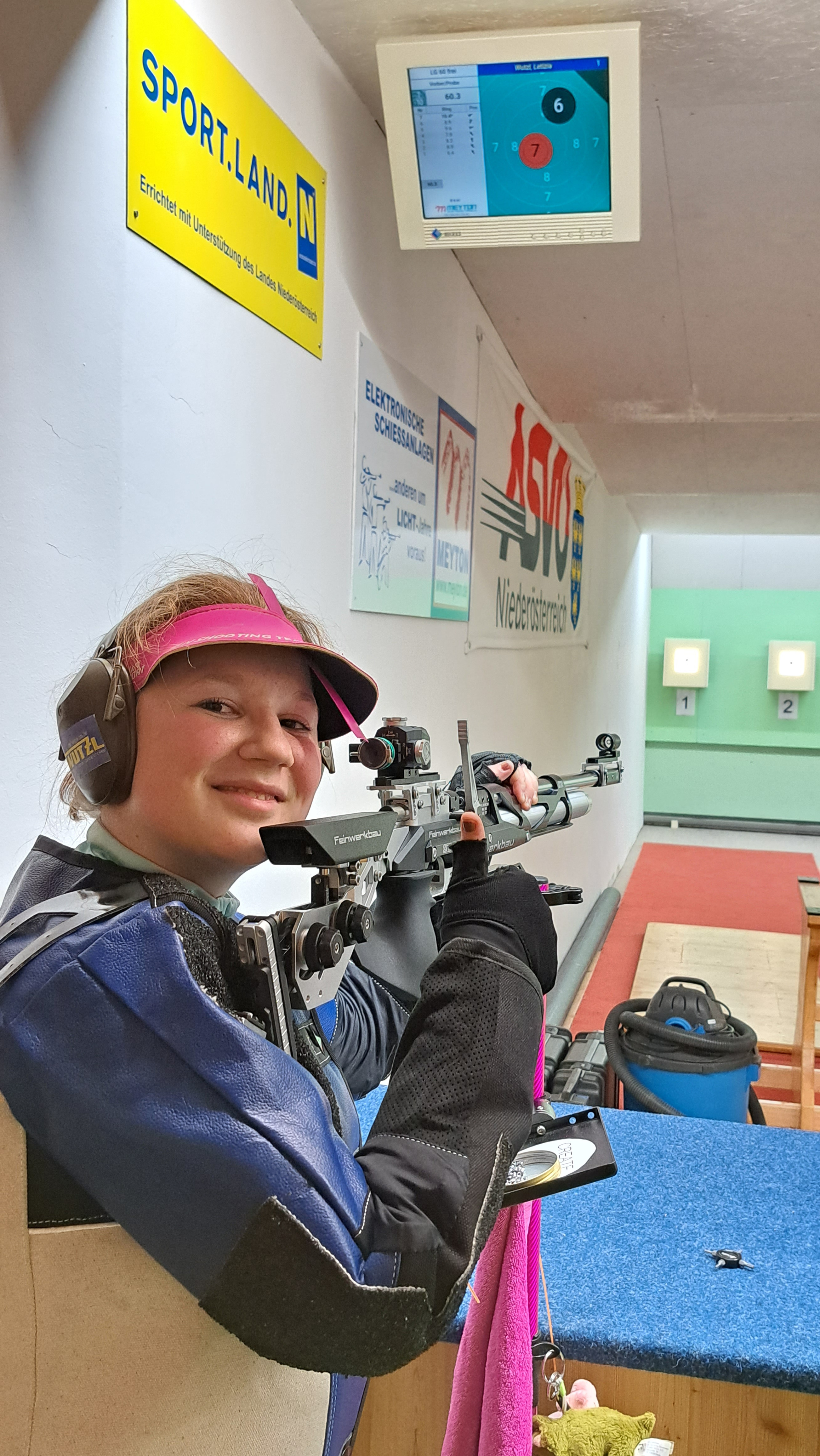 Am Sonntag bei der Landesmeisterschaft wurde sie in der Jungschützinnen Klasse, welche altersmäßig höher ist als ihre eigentliche, dritte, mit unserer Jungschützen Mannschaft wurde sie als besteder Mannschaft Landedmeisterin.