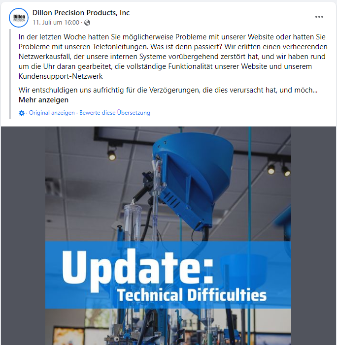 Vorgestern bekam ich eine Mail von Dillon, dass es seit dem 12. JUNI 2022 einen Totalausfall im Bereich, Webseite, Tickets, Mail und Telefon gab.