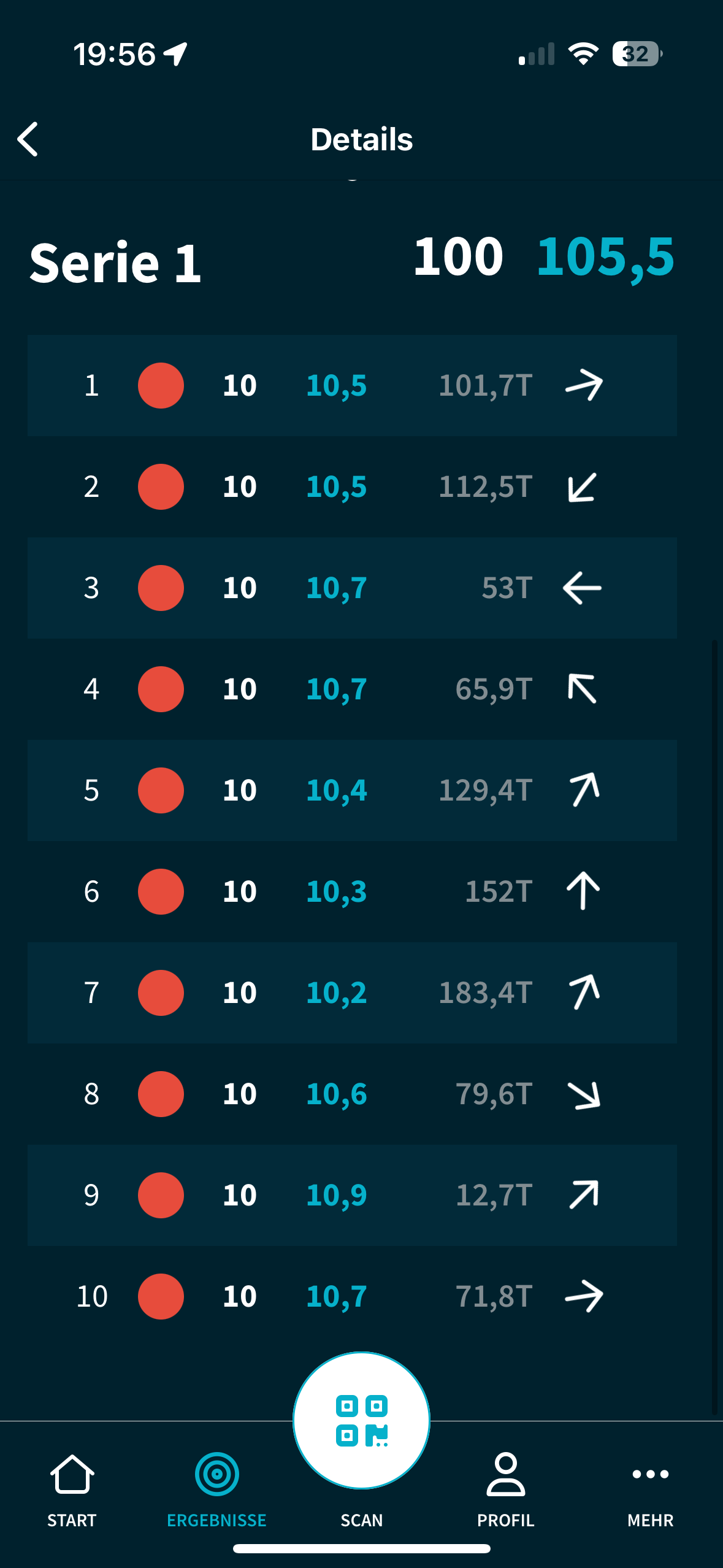 Wieviele Klicks hast du nach der ersten Serie gemacht? Ich seh da so generell eine Tendenz zum „Hochschuss“.
