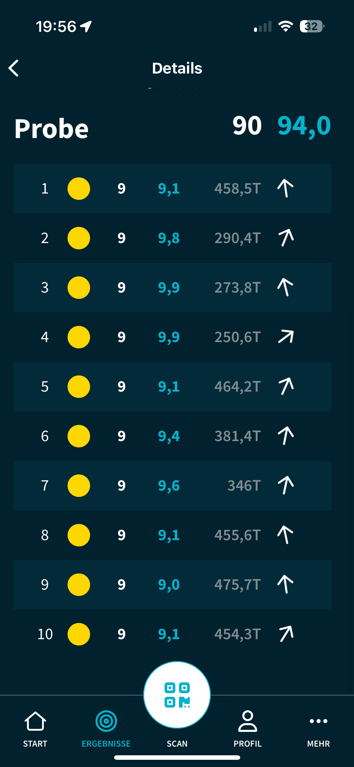Gute Leistung - aber schon bei 299 Ringen (ohne zehntel) kommst du mit viel Glück unter die ersten 10.