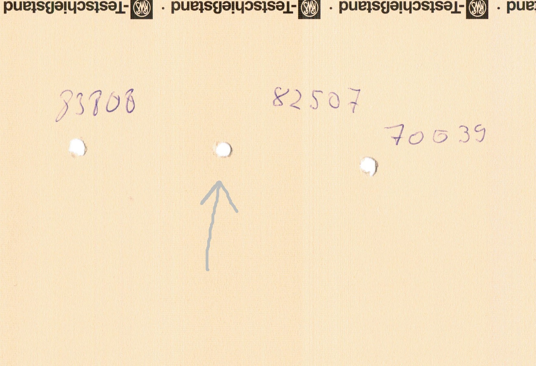 Ich weiss noch, das er zu mir sagte, mach doch noch ein Wenig weiter, Peter und ich hab gesagt, warum??? Im Anhang das Bild vom Test. Ich sag mal, das sagt alles. Was will man mehr, ach wenn ich doch so schiessen könnte.