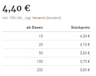 Beim WSB liegst du bei 100 Dosen bei 3,70€/Stück. Das finde ich sehr günstig - wenn die Munition okay ist.