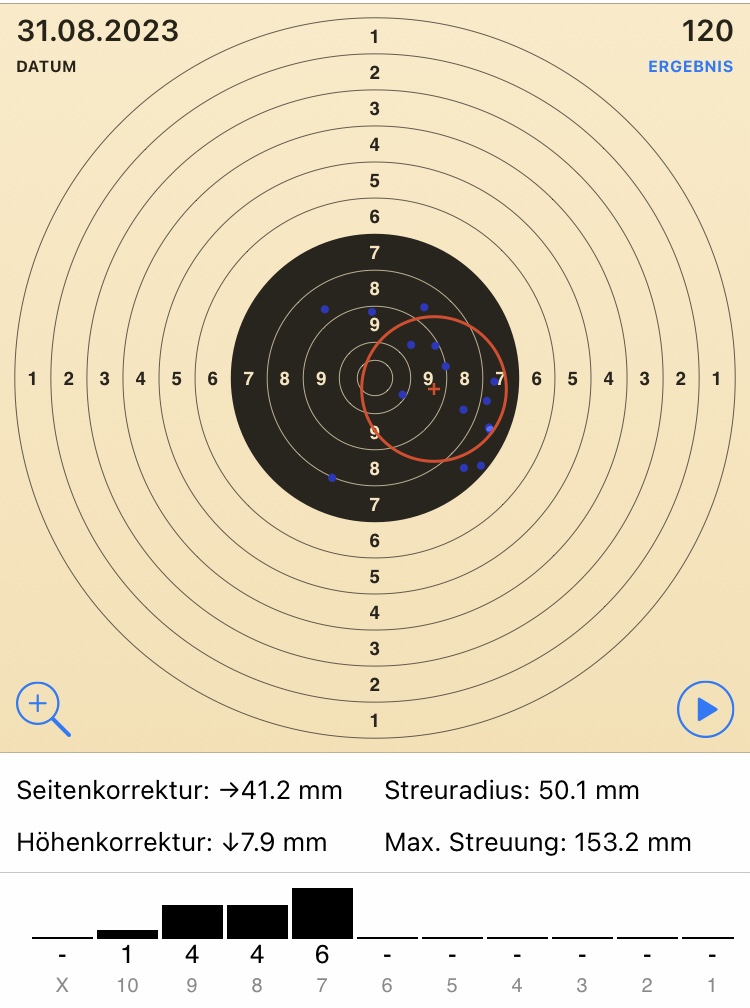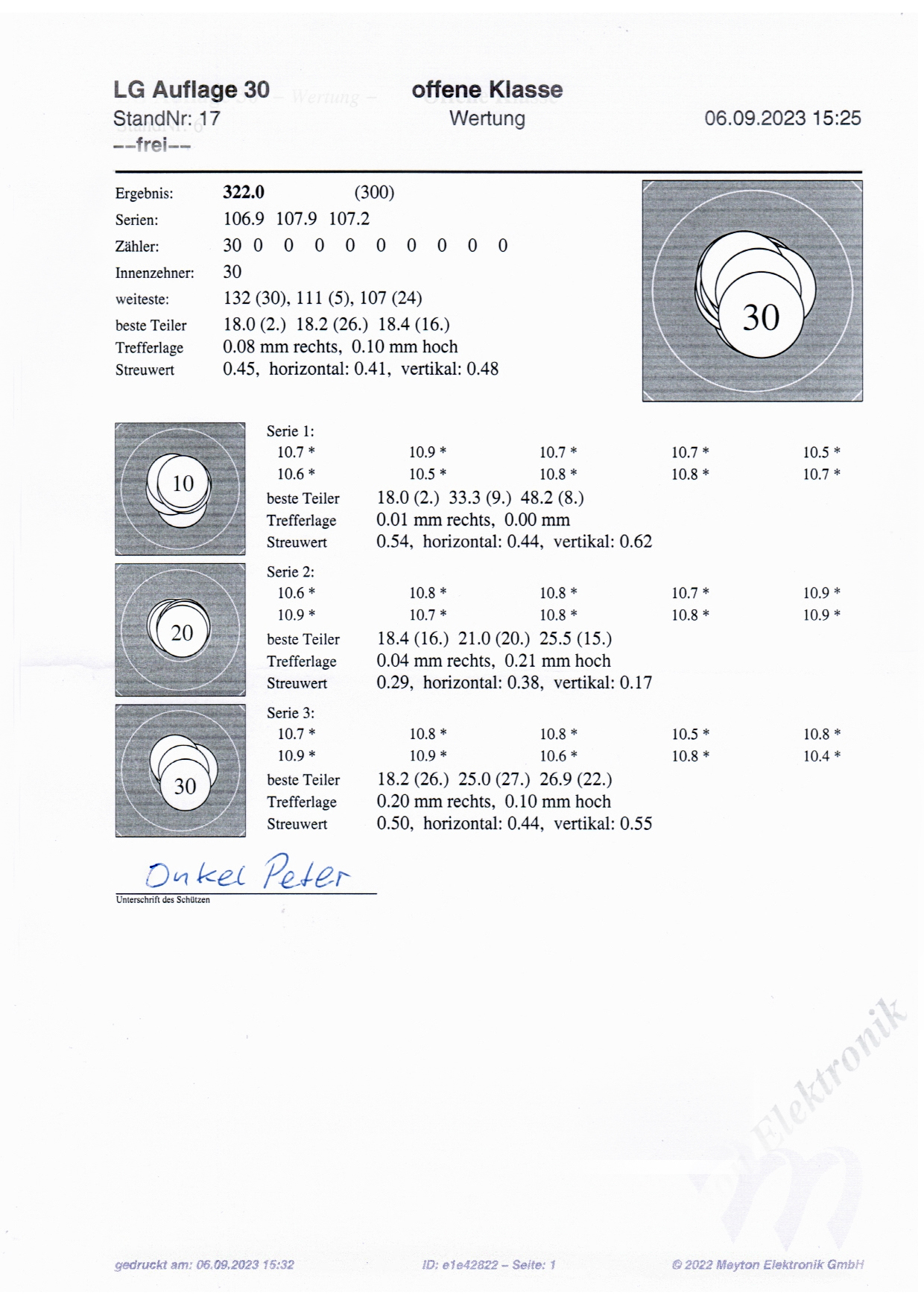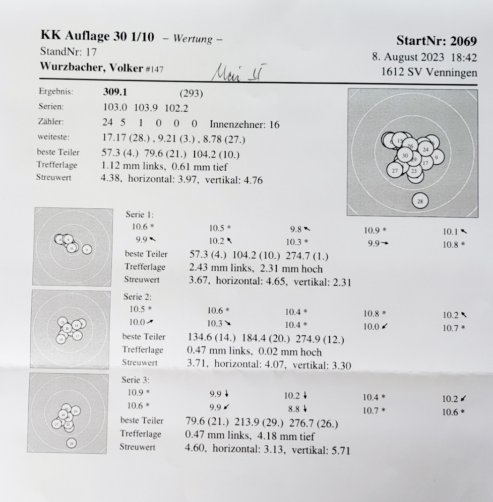 mein Ergebnis für August LP frei - 87 / 81 / 87 / 82 = 337 Ringe.