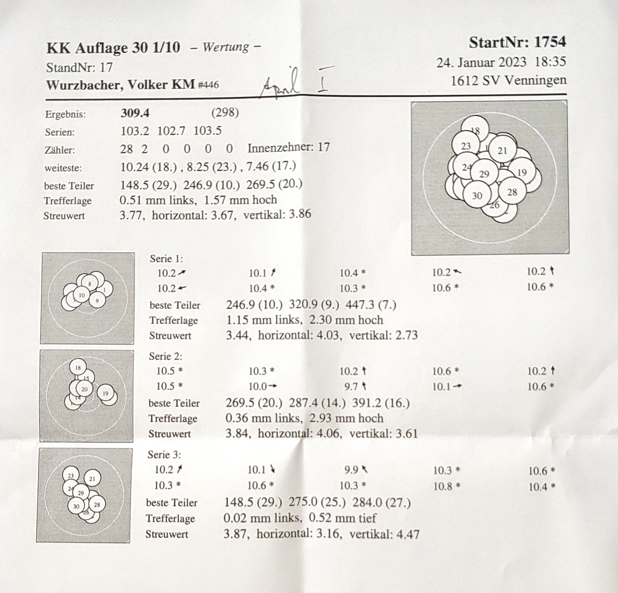 Mein Ergebnis für LP Auflage - Januar mit 307,3 Ringen fehlt leider.