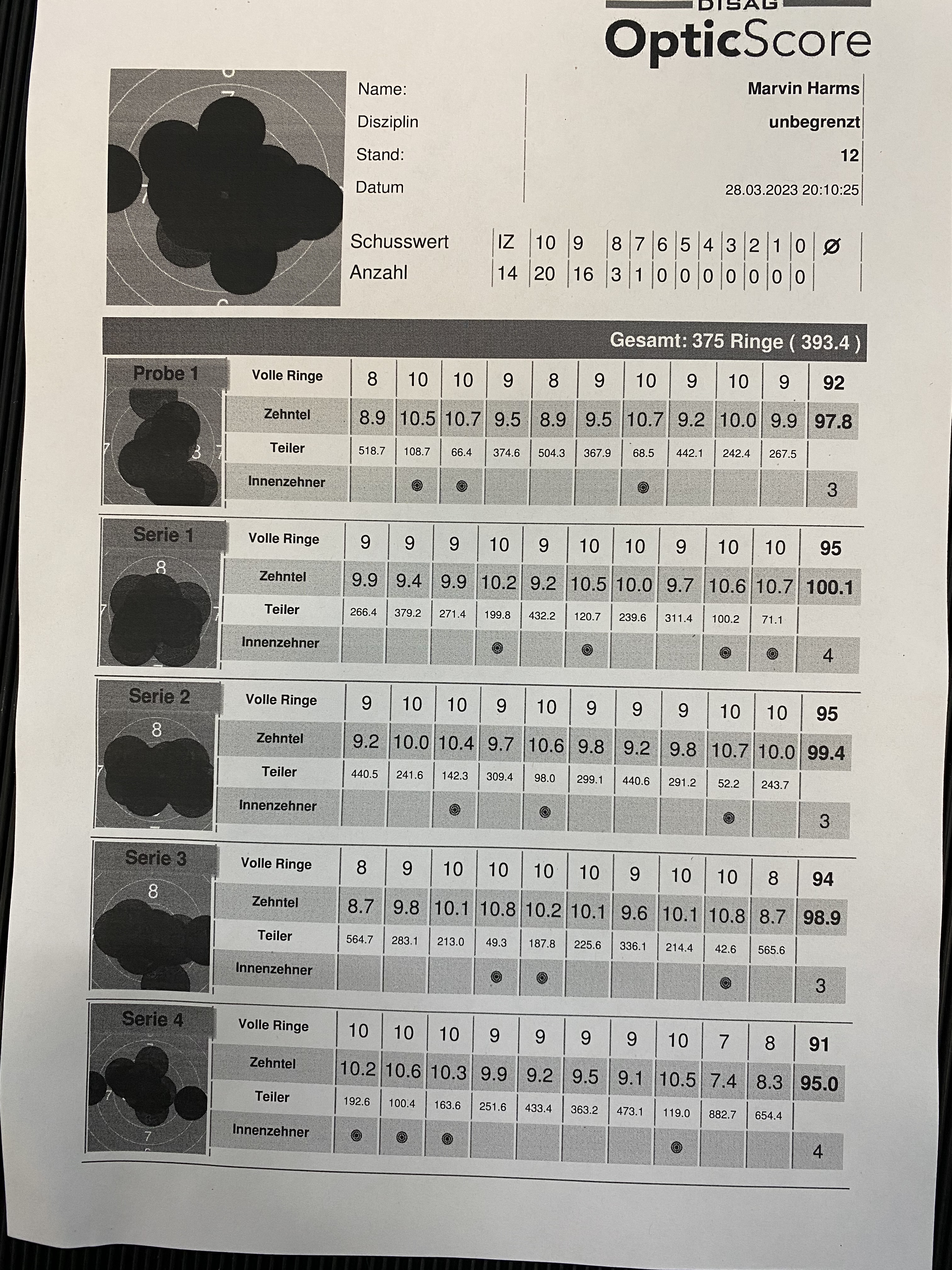 95 95 94 91 = 375 Ringe