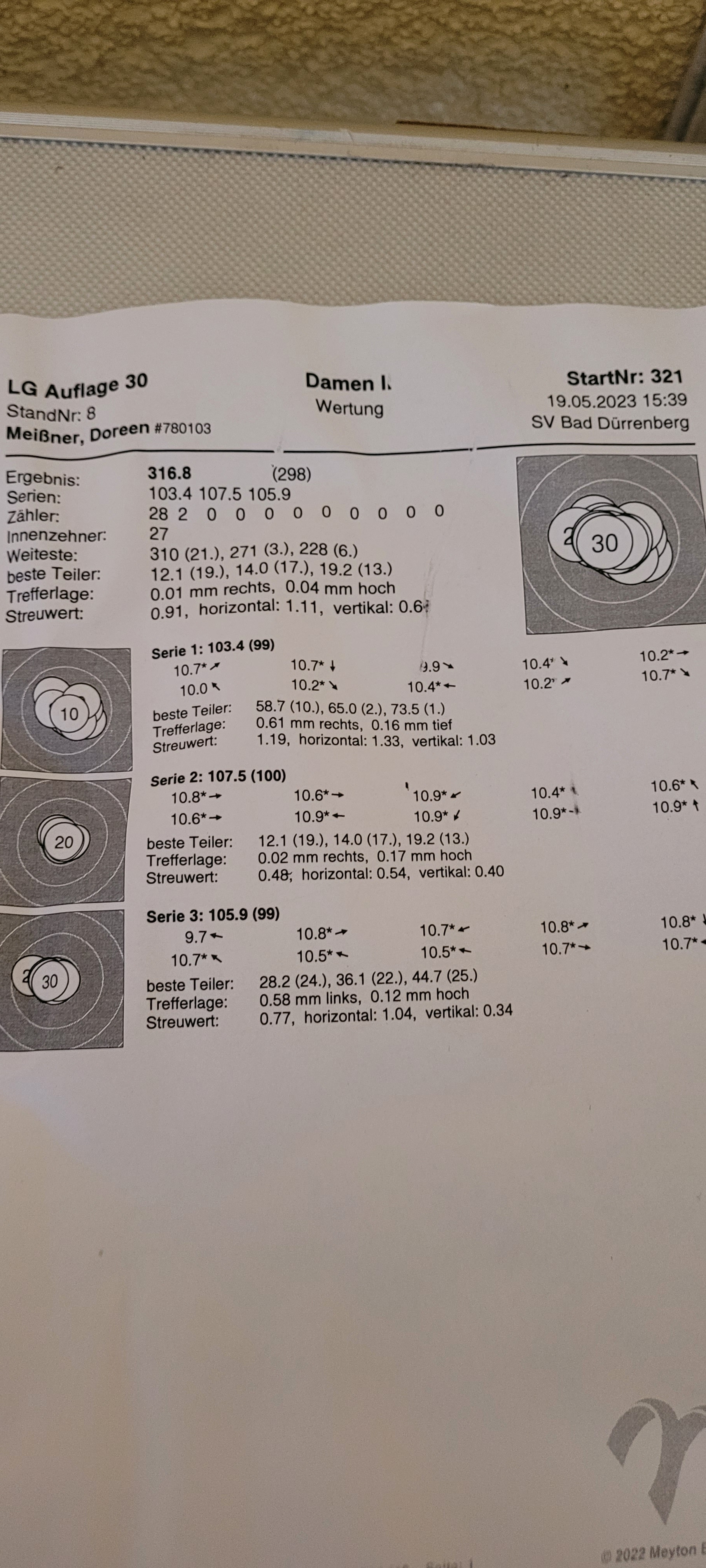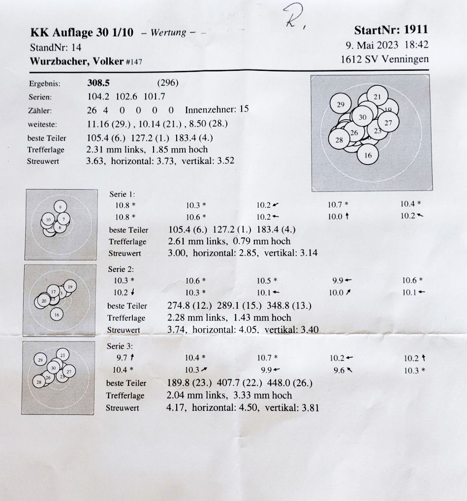 Hier mein Ergebnis LP Auflage für Mai = 300,3 Ringe
