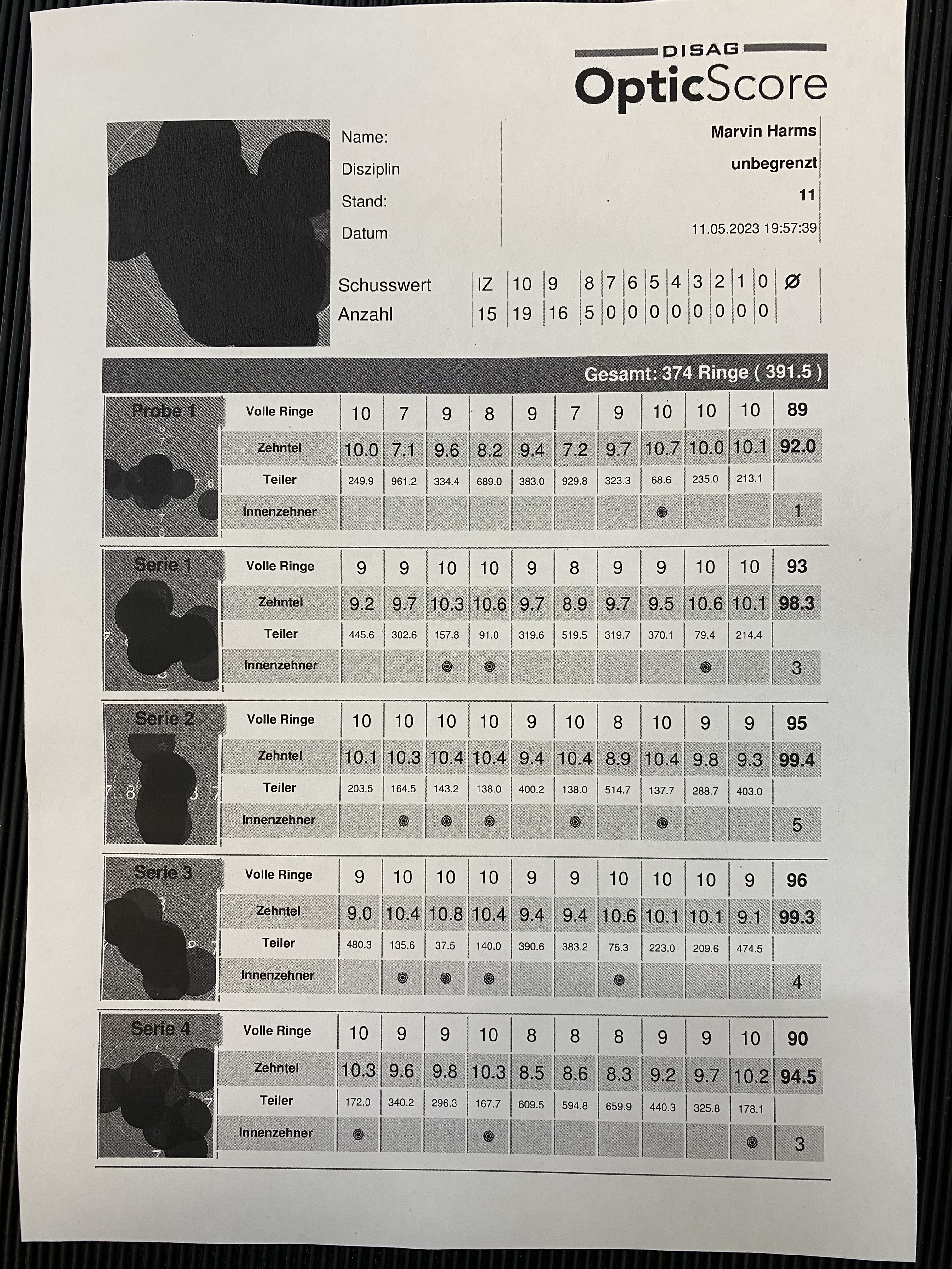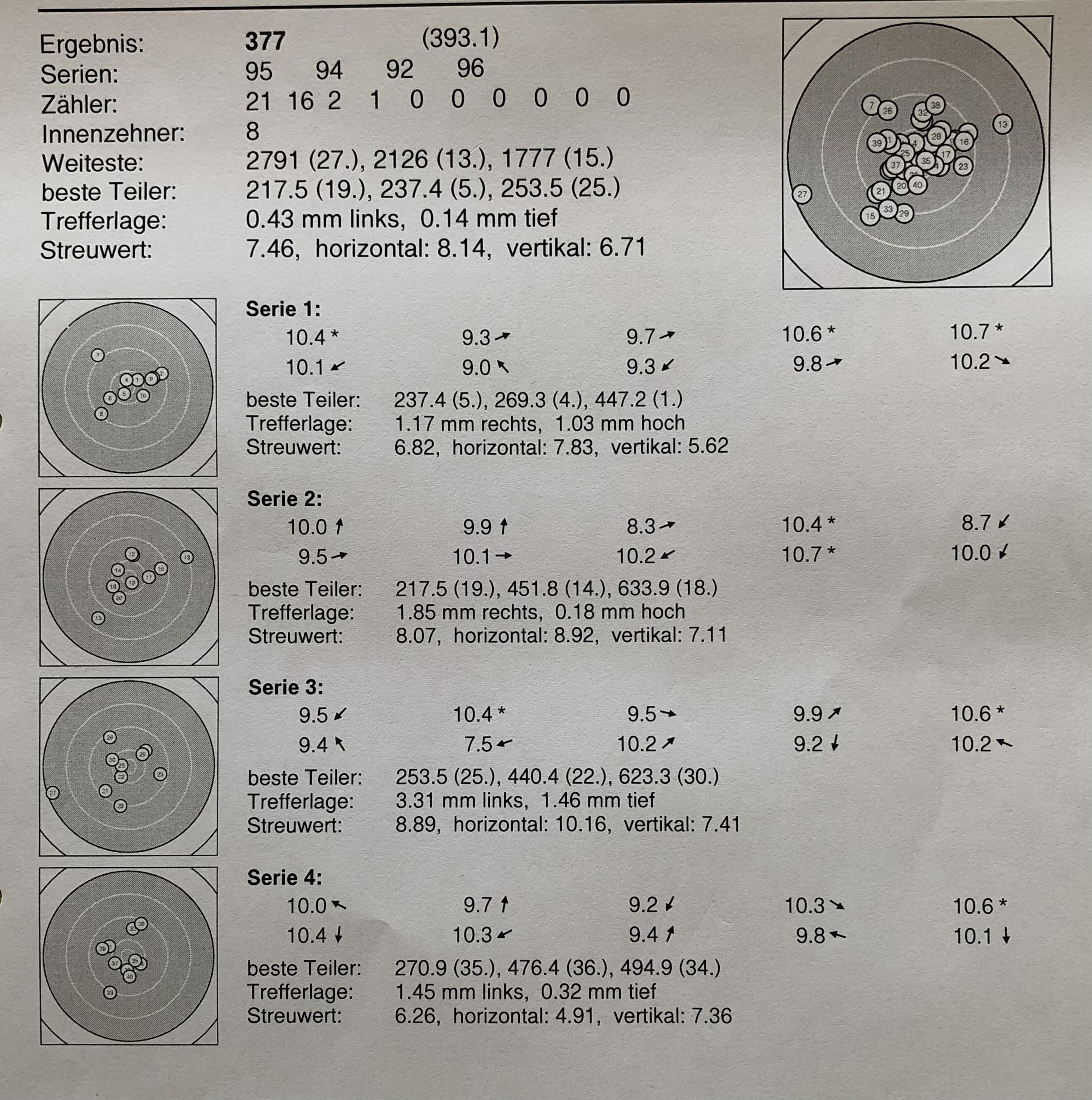 Mein Ergebnis für den Mai, Luftgewehr Freihand.