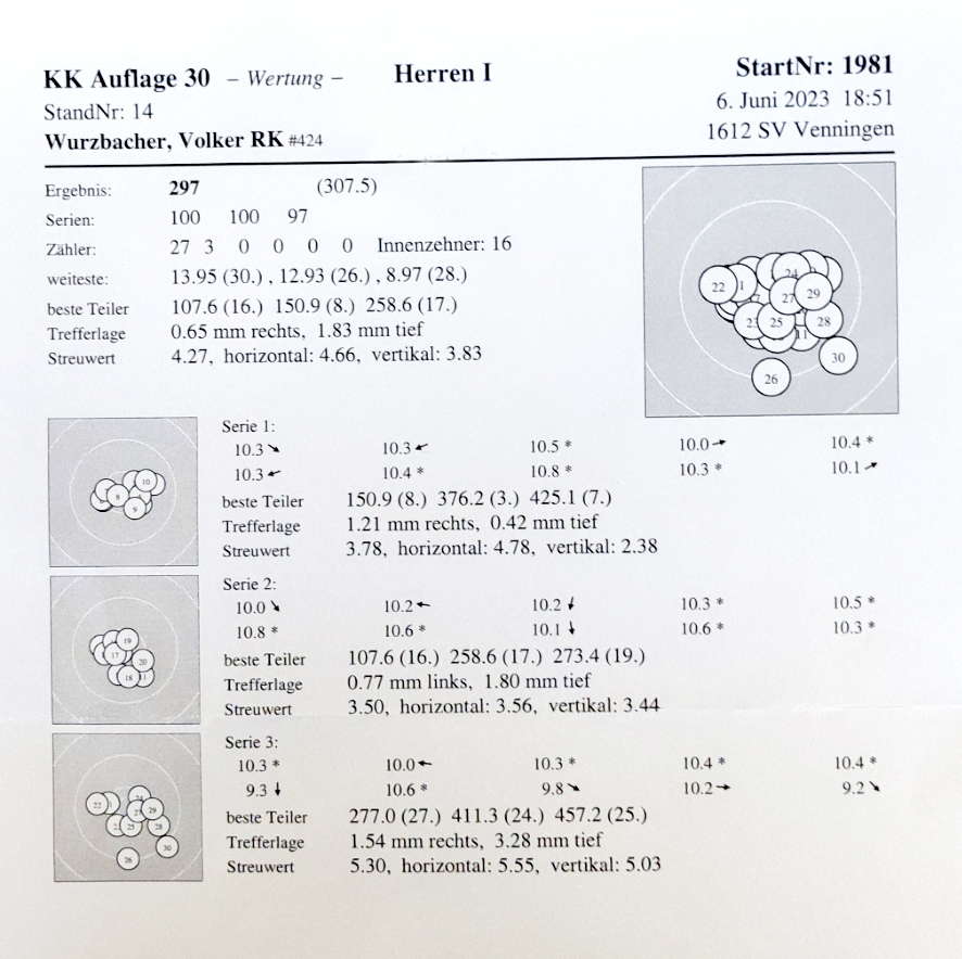 Mein Ergebnis KK 50m Auflage für Juni: 307,5