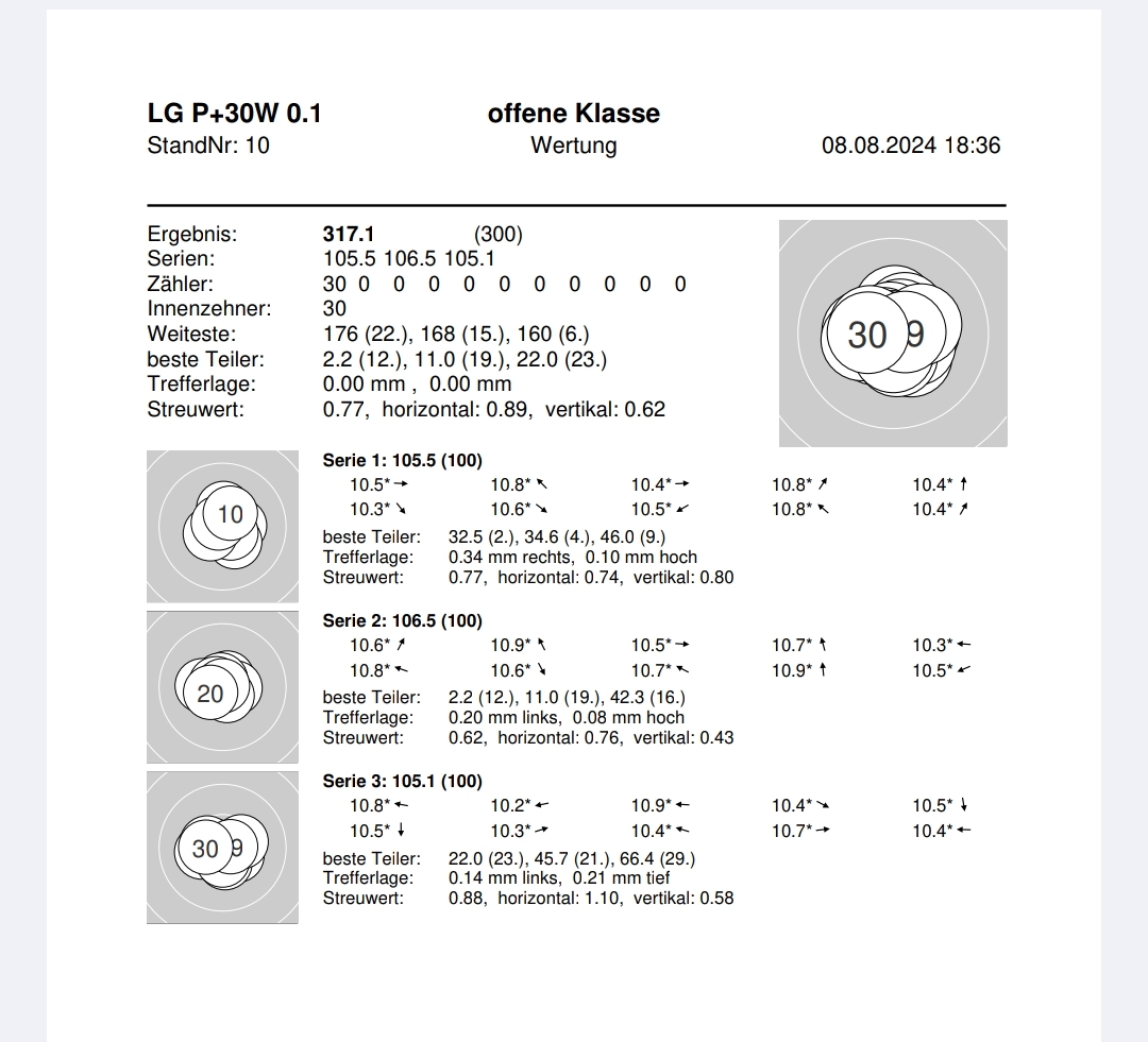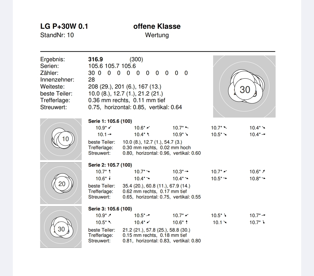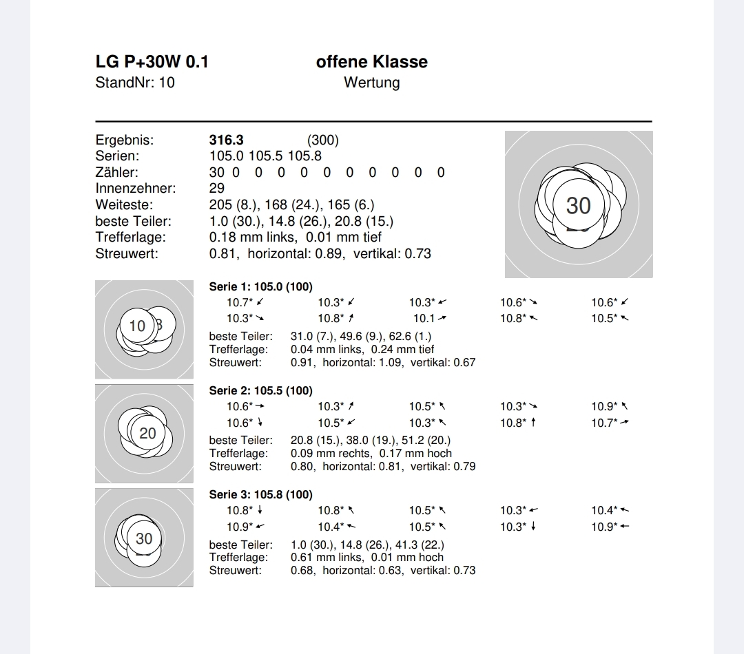 Denn eigentlich konnte ich meine Ergebnisse vom letzten Mal annähernd halten. Auch wenn es nur 2x 316,1 und einmal 316,2 wurde, ich fange an mich über nicht so gute Schüsse zu ärgern😁