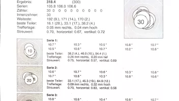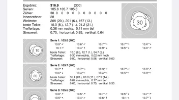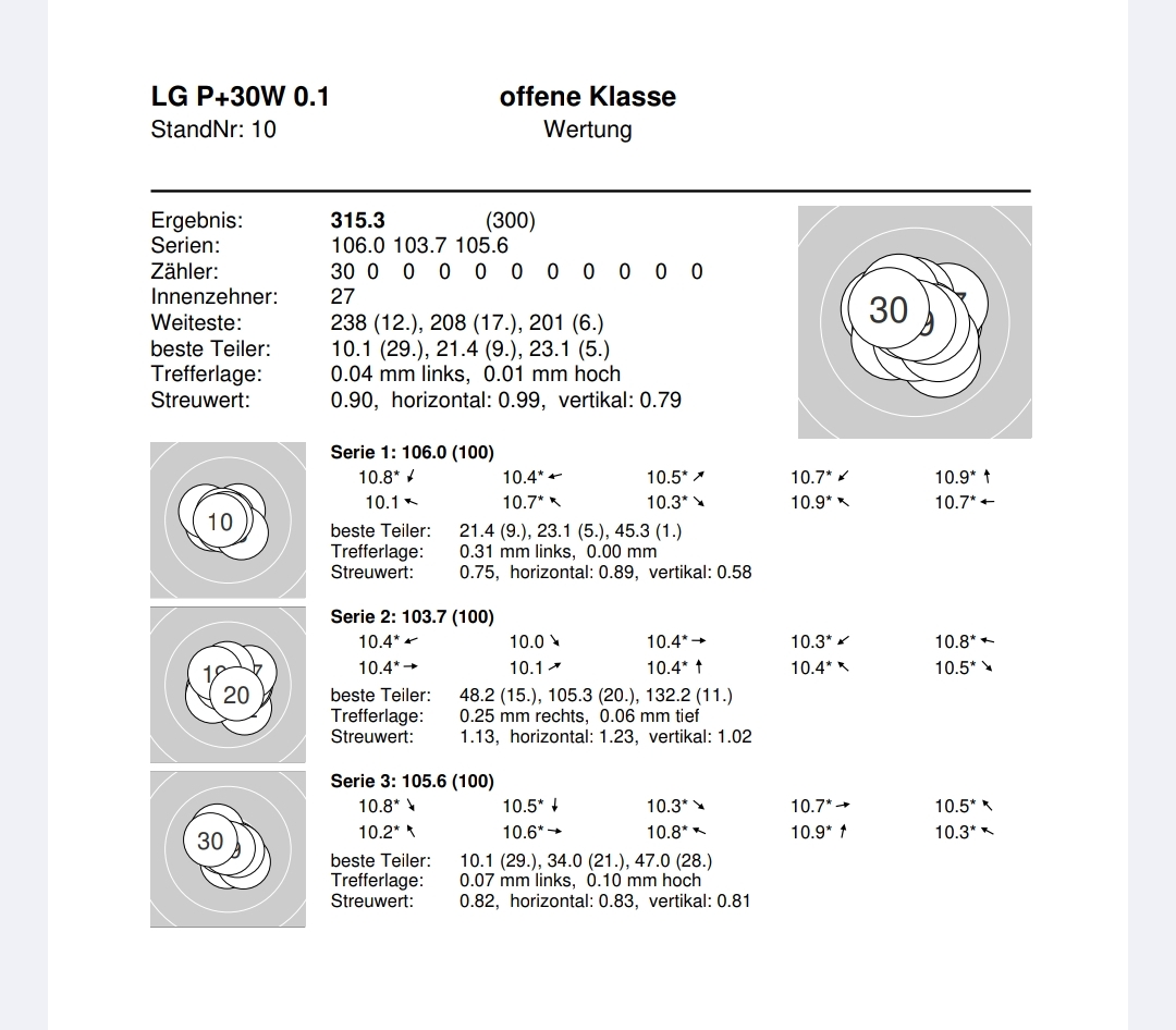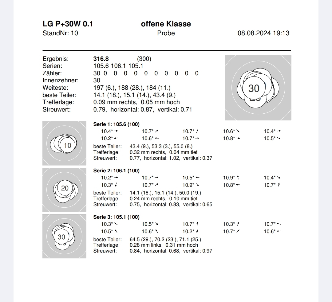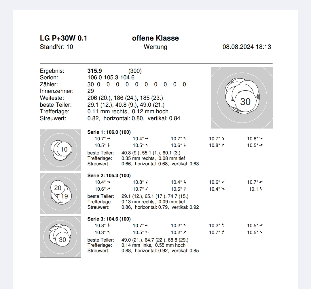 Denn eigentlich konnte ich meine Ergebnisse vom letzten Mal annähernd halten. Auch wenn es nur 2x 316,1 und einmal 316,2 wurde, ich fange an mich über nicht so gute Schüsse zu ärgern😁