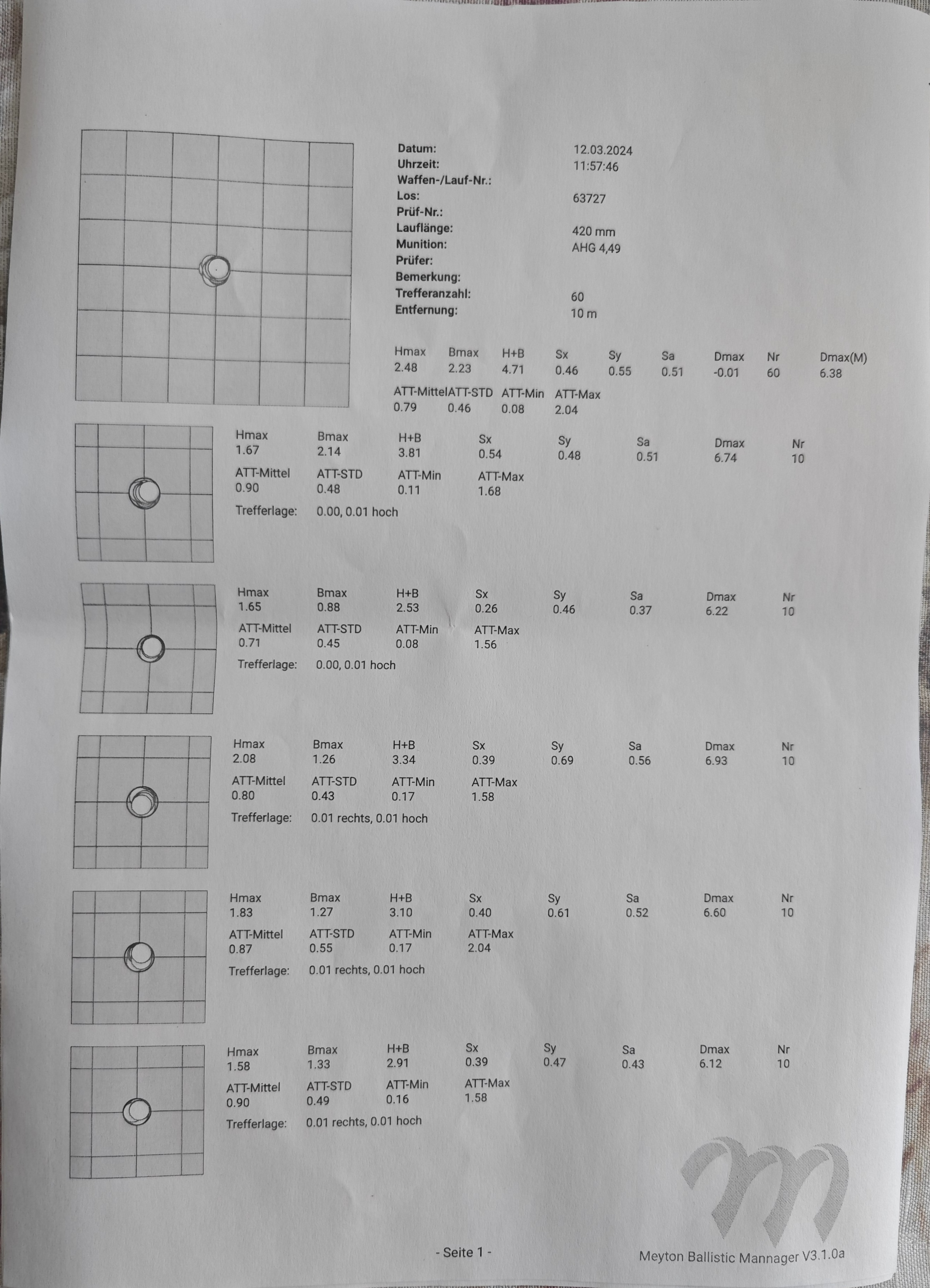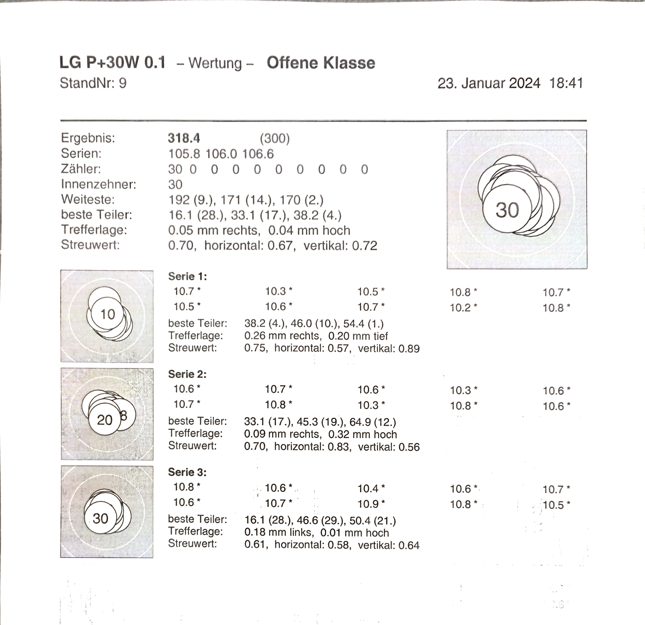 • So ist es. Ob die ganzen Einstellungen am Gewehr was taugen, der Anschlag ok ist etc. wird sich im Wettkampf zeigen.