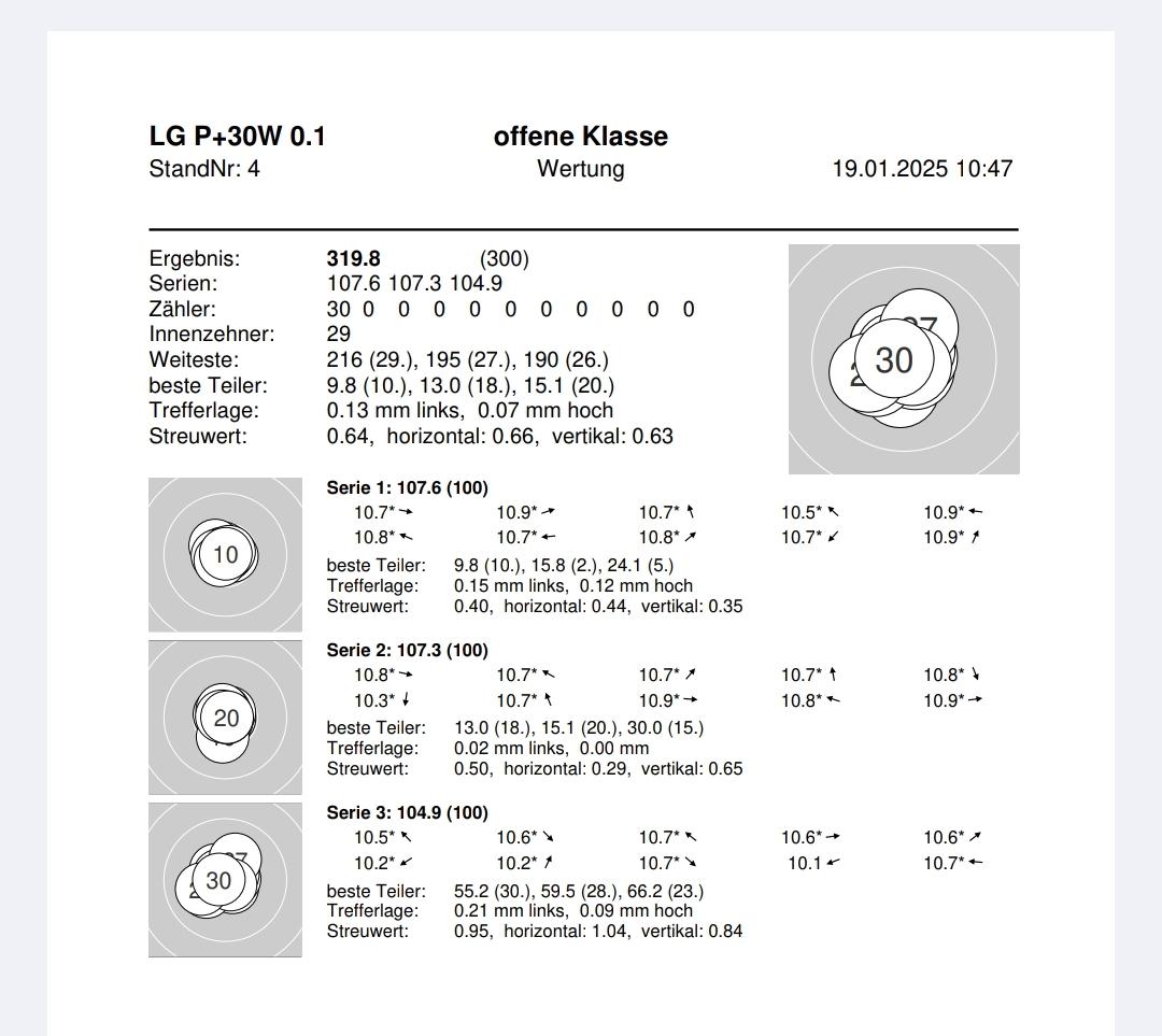 Es ist Sonntag, Sonntag früh genau gesagt, 9 Uhr und vor dem Frühstück. Langsam aber sicher bei eisiger Kälte an die für mich guten Ergebnisse rangetastet. 316.6, 317.1 und am Ende noch mal bischen Gas gegeben, 319,8, wer sagst den. Nach der vergeigten 104.9 mit der Ansammlung der schlechten Zehner war mir schlagartig nicht mehr kalt😁