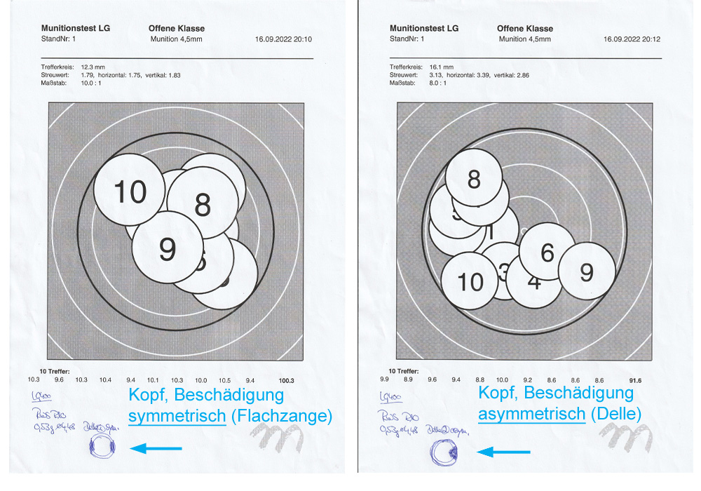 Bin nur nicht sicher ob ein solch kleines Merkmal von Bedeutung ist. In einem Video von Heinz R. wurden u.a. deformierte Köpfe getestet. In dem es dann heißt kleinere Beschädigungen haben keine Auswirkungen auf den Streukreis!