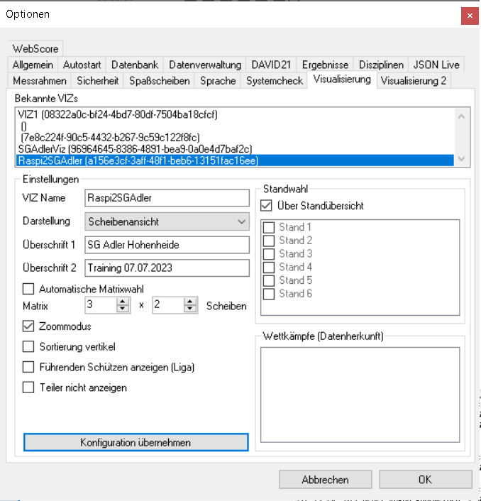 Unsere Wettkämpfe lege ich ganz normal im Dialogfenster an, und weise die Stände zu. Jedoch wählt der Schütze am Stand selber die Disziplin zB 40 Schuss aus und beginnt dann. Kann das evtl ein Problem sein?