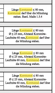 Der Punkt 9.7.3, wonach der Korntunnel die Mündung max. 50 mm überragen darf, in Teil 1 unter 1.5.4 steht übrigens 'sichtbare Mündung, soviel zu den Feinheiten, befindet sich schon seit einiger Zeit in der Sportordnung, zumindest seit Ausgabe 2021.