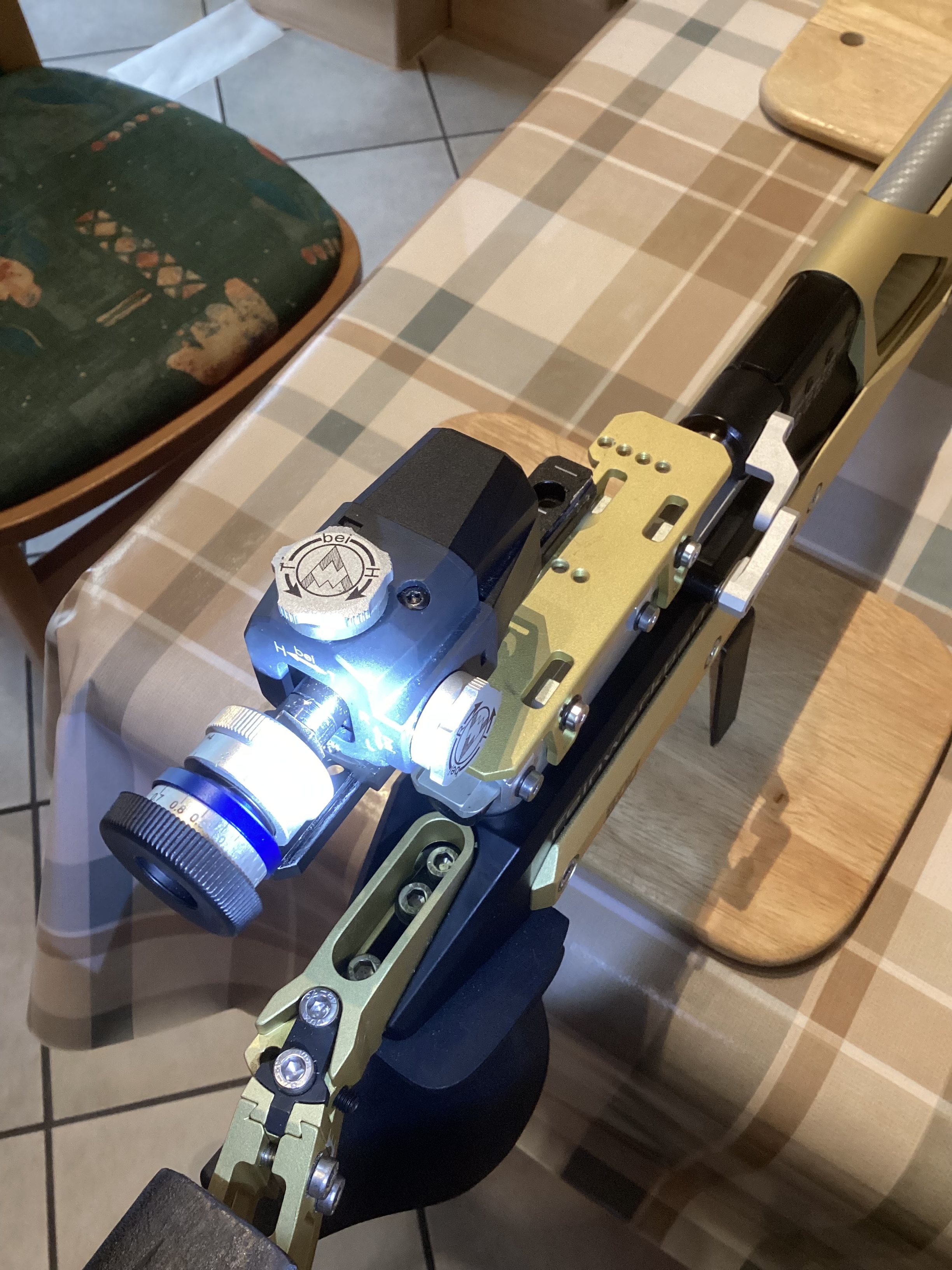 • Ich glaube das ist eine Möglichkeit, dem Diopter hinten was unterzuschieben so dass der Rand vom Diopter beim Zielen unten links verschwindet, das werde ich beim nächsten Training ausprobieren. So gesehen hat der Diopter irgendwo innen eine Macke. Ich kann mir das anders nicht erklären. Die Kopfhaltung kann es nicht sein, da müsste ich soviel nachregulieren, das kann der Diopter nicht, weil es außerhalb des Stellbereiches ist, aber ich werde es alles testen.