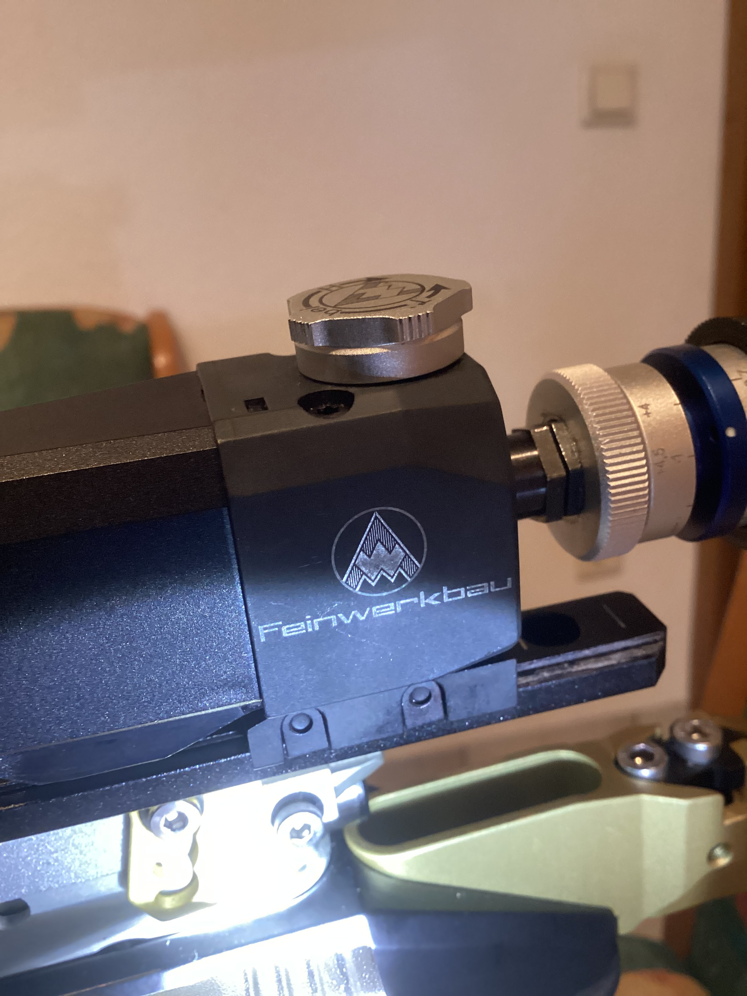 Feinwerkbau bietet dir auch die Möglichkeit, durch die 4 Feststellschrauben, den Diopter vorn abzusenken. Ohne dass sich die Iris groß verstellt. Das ist eine langwierige Geschichte. Habe ich genauso durch