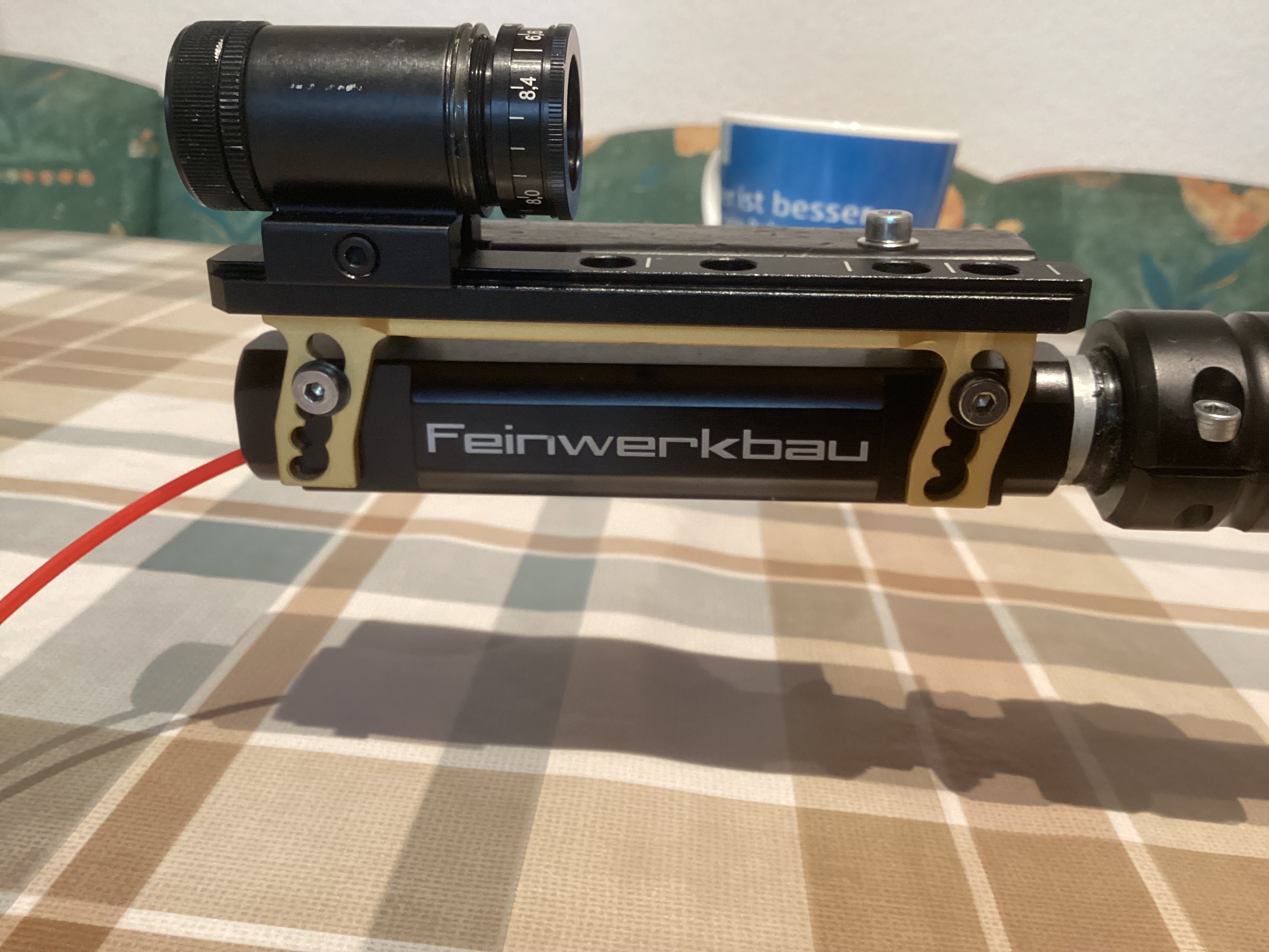 "dem Diopter hinten was unterzuschieben" - nein, die zwei vorderen seitlichen M4 Schrauben lockern, und die Feinwerkbau-Halterung vorn nach unten drücken. Es kann sein, dass du alle 4 Schrauben dazu lockern mußt.
