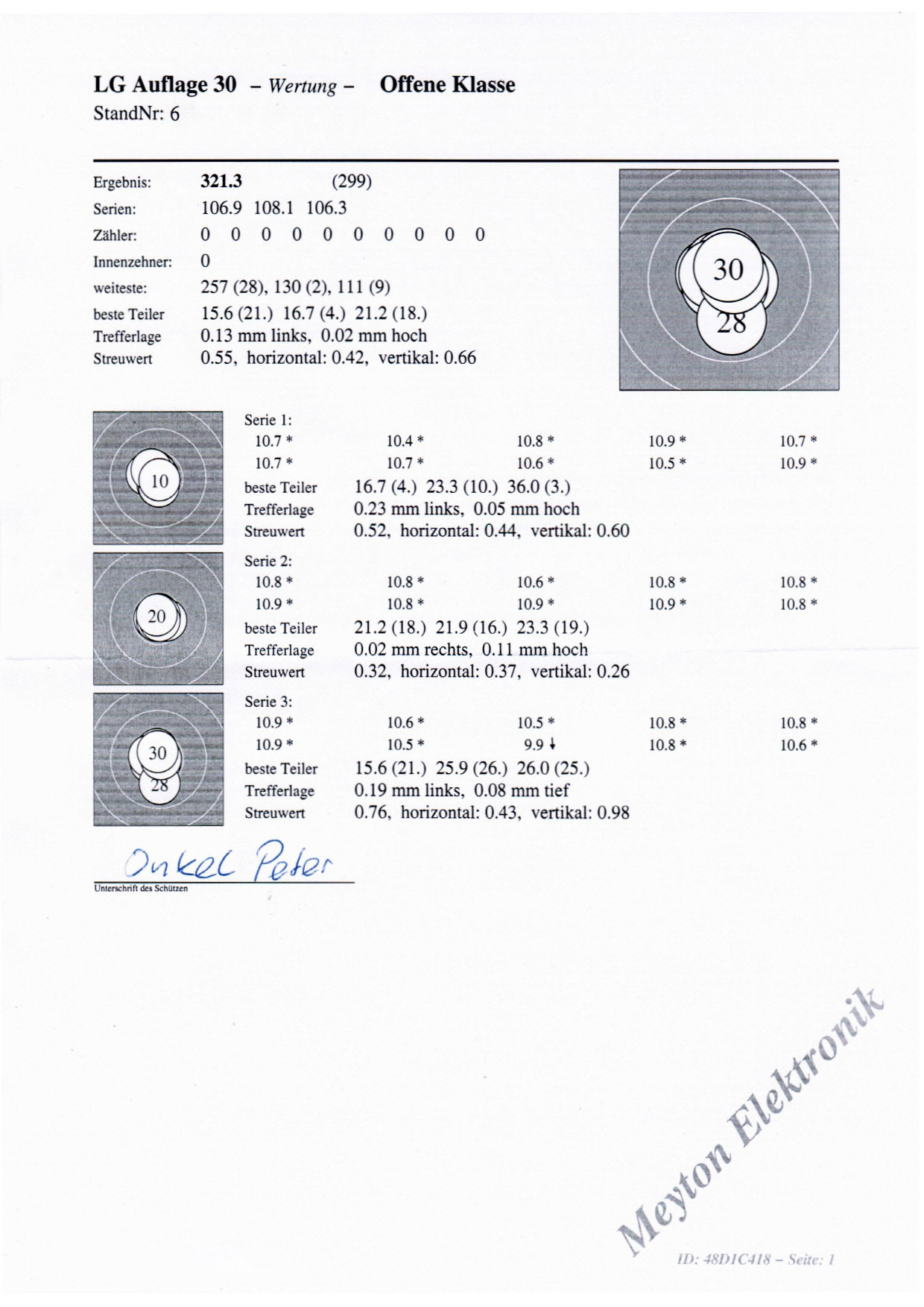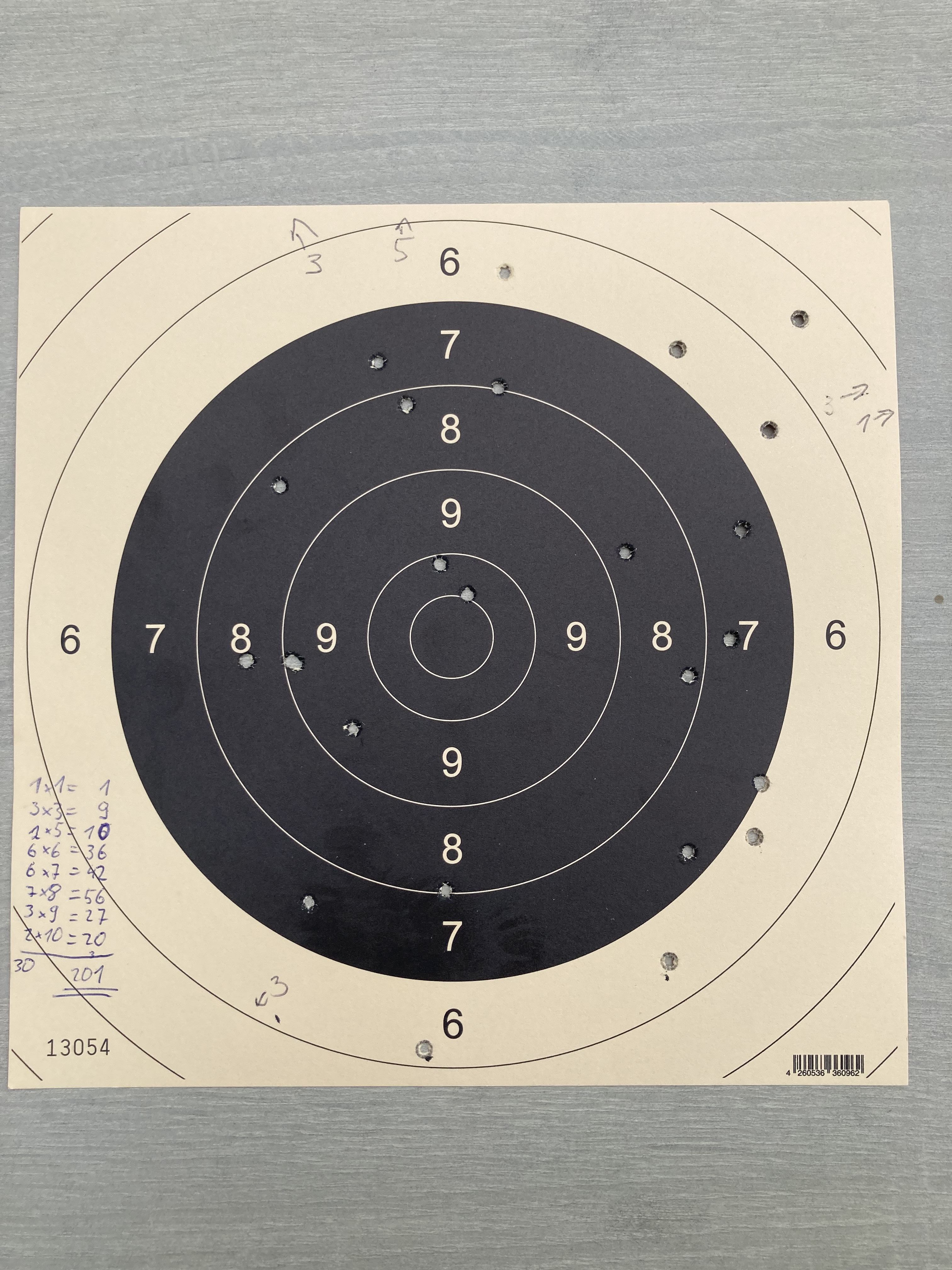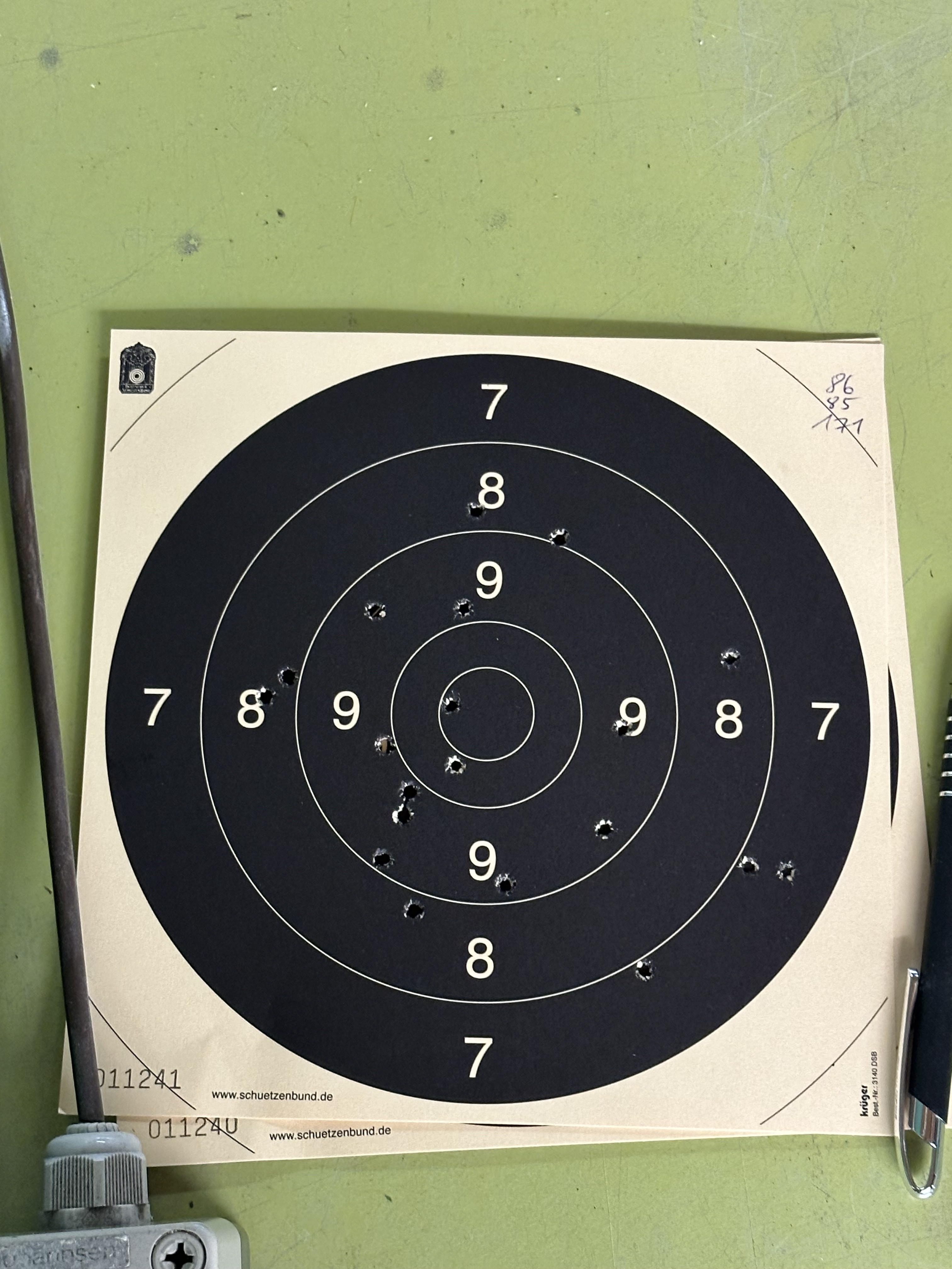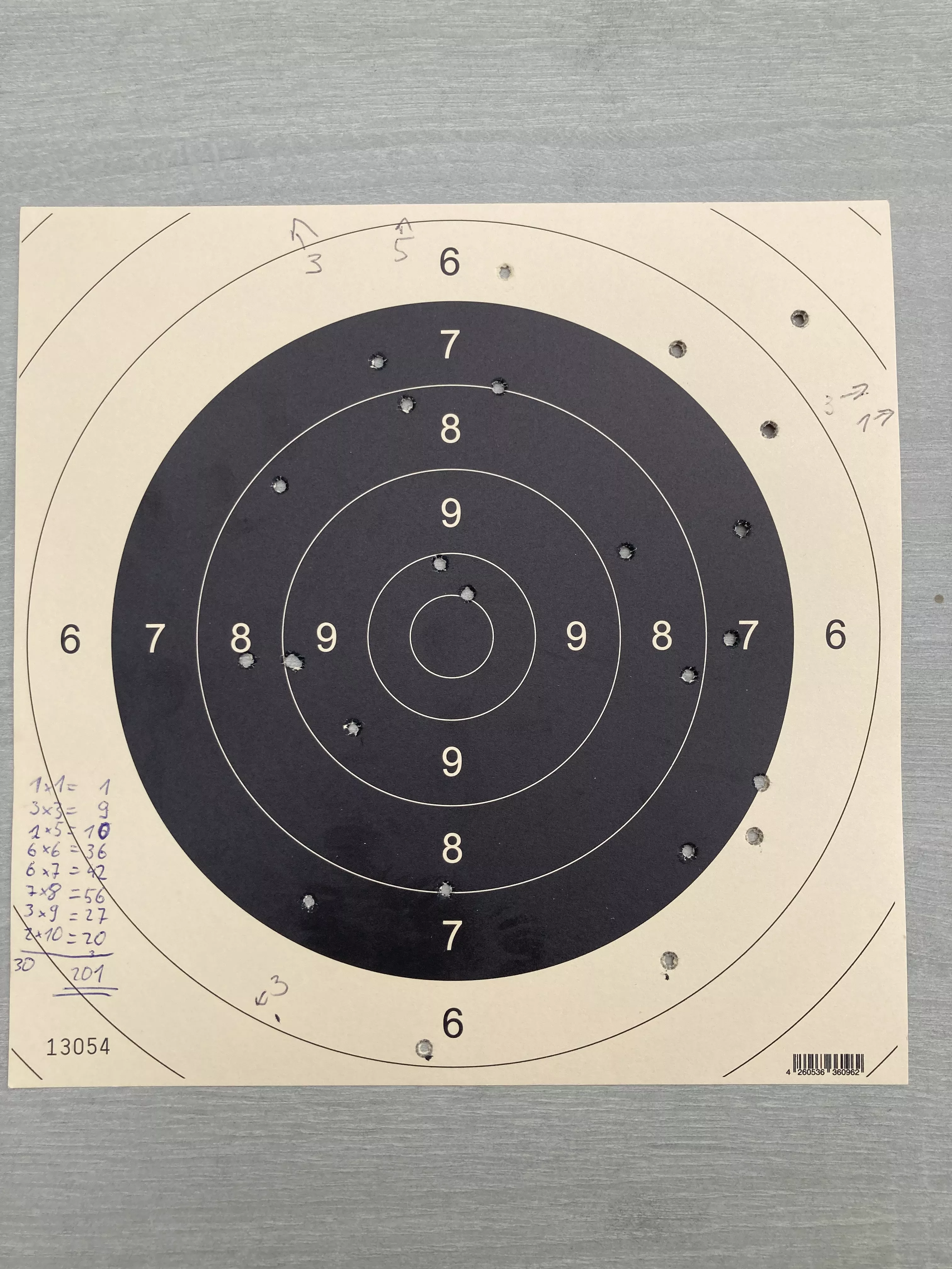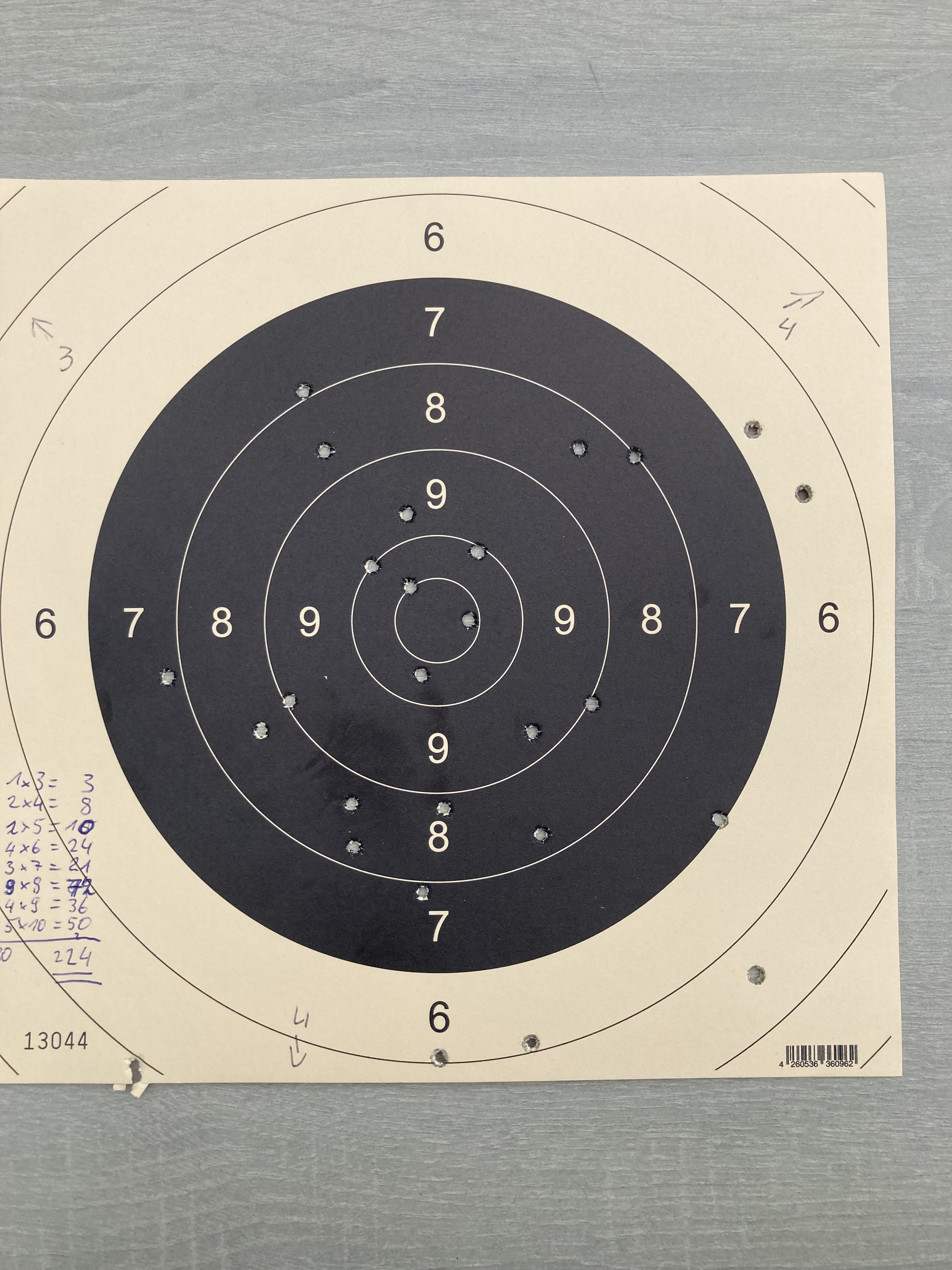 321,3 Ringe LG-A. Der eine Neuner war nicht so gut, aber 108 bei 10 Schuss bekomm ich diesen Monat nicht mehr zusammen, zumal jetzt laufend Landesmeisterschaften sind.