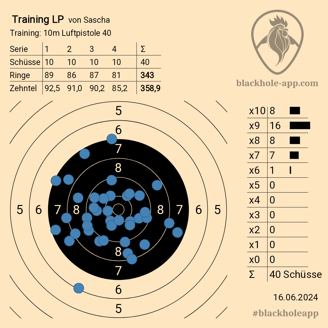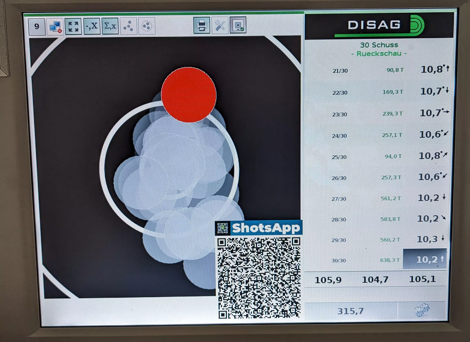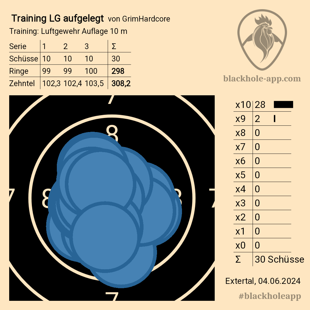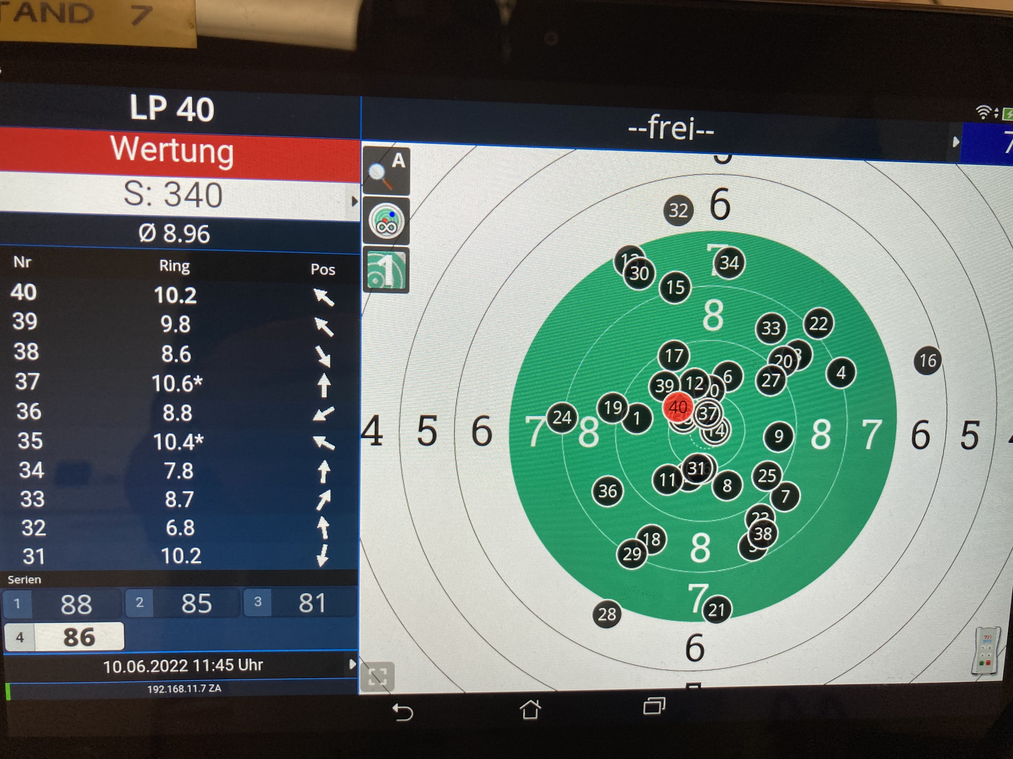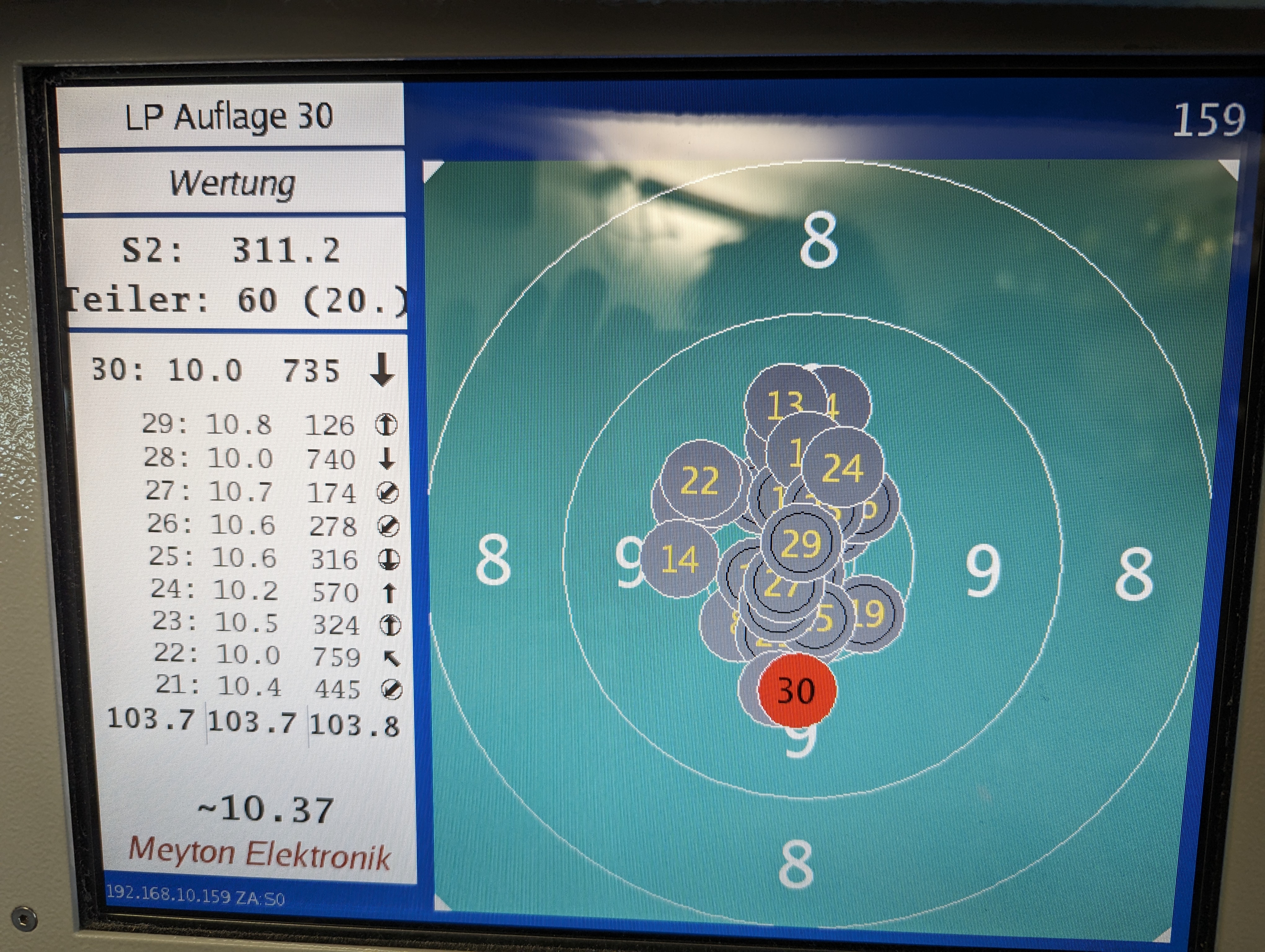 321,3 Ringe LG-A. Der eine Neuner war nicht so gut, aber 108 bei 10 Schuss bekomm ich diesen Monat nicht mehr zusammen, zumal jetzt laufend Landesmeisterschaften sind.