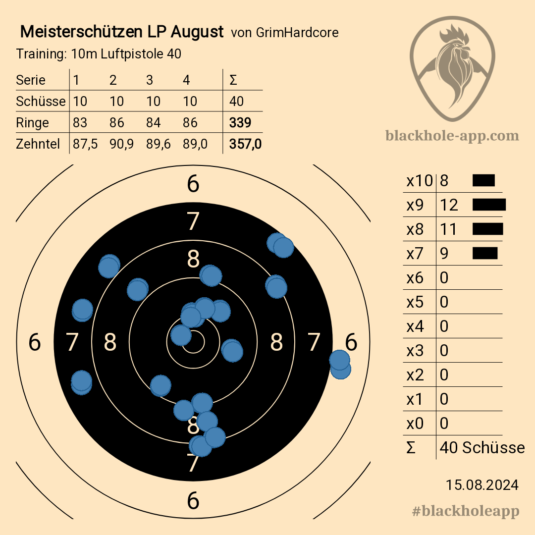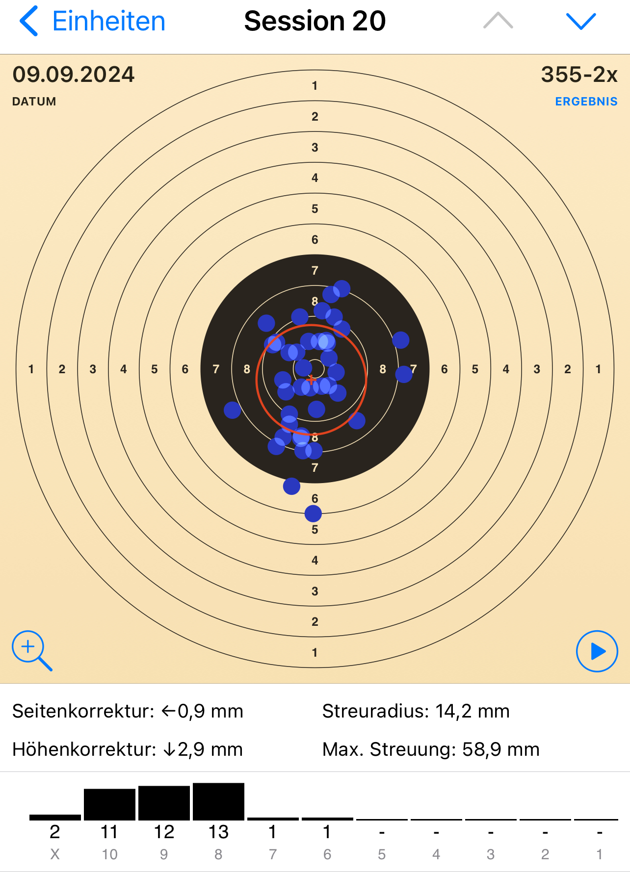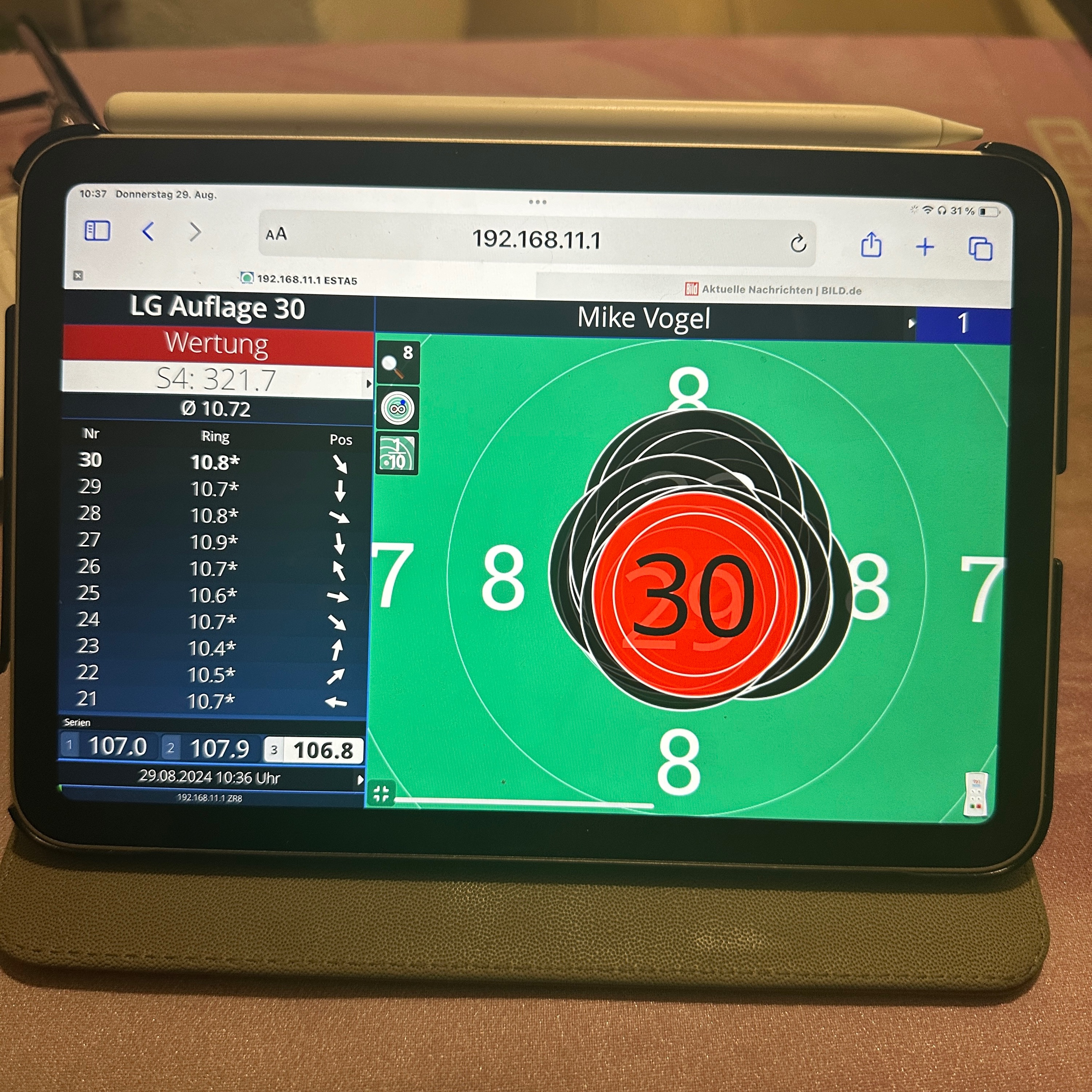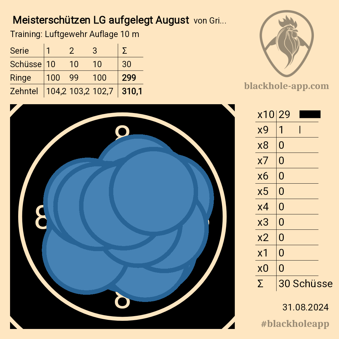 Meine Meldung KK-Auflage für August 2024: Ergebnis: 297 / 312,6 Ringe Inz. 20 / 9er: 3
