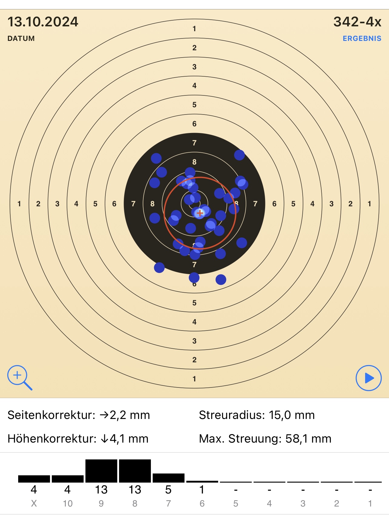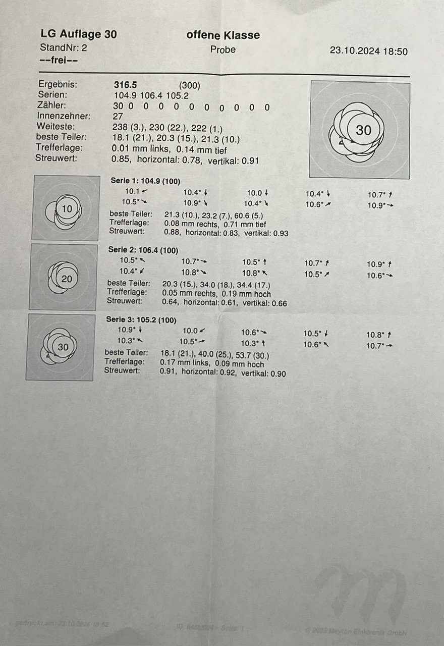 Das letzte Ergebnis für 2024 mit der Luftpistole,frei (Oktober/ Vereinsabend) :