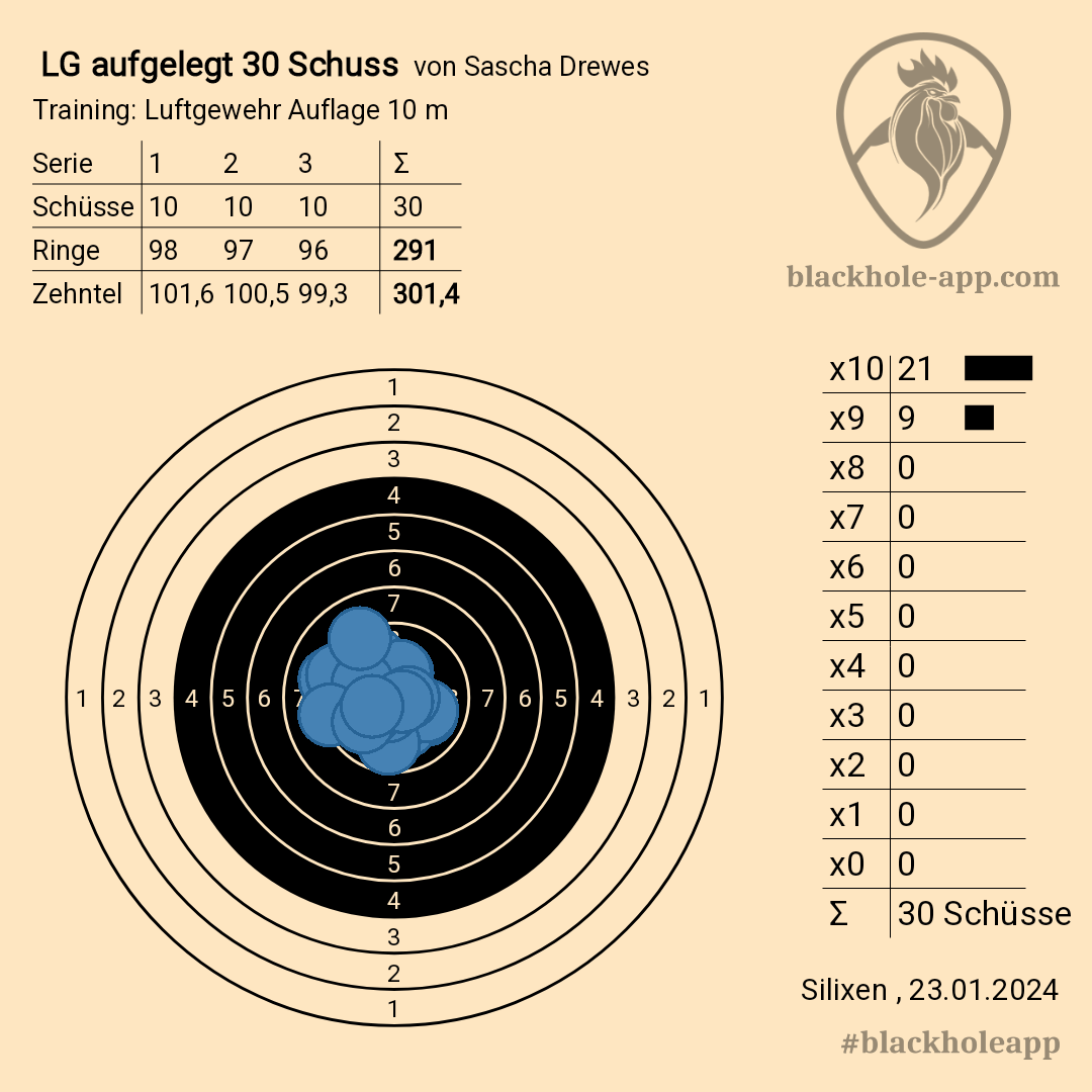 ich würde mich dann auch am Stammschießen 2024 beteiligen wollen und liefere für Januar 2024 das Ergebnis LG-Auflage.