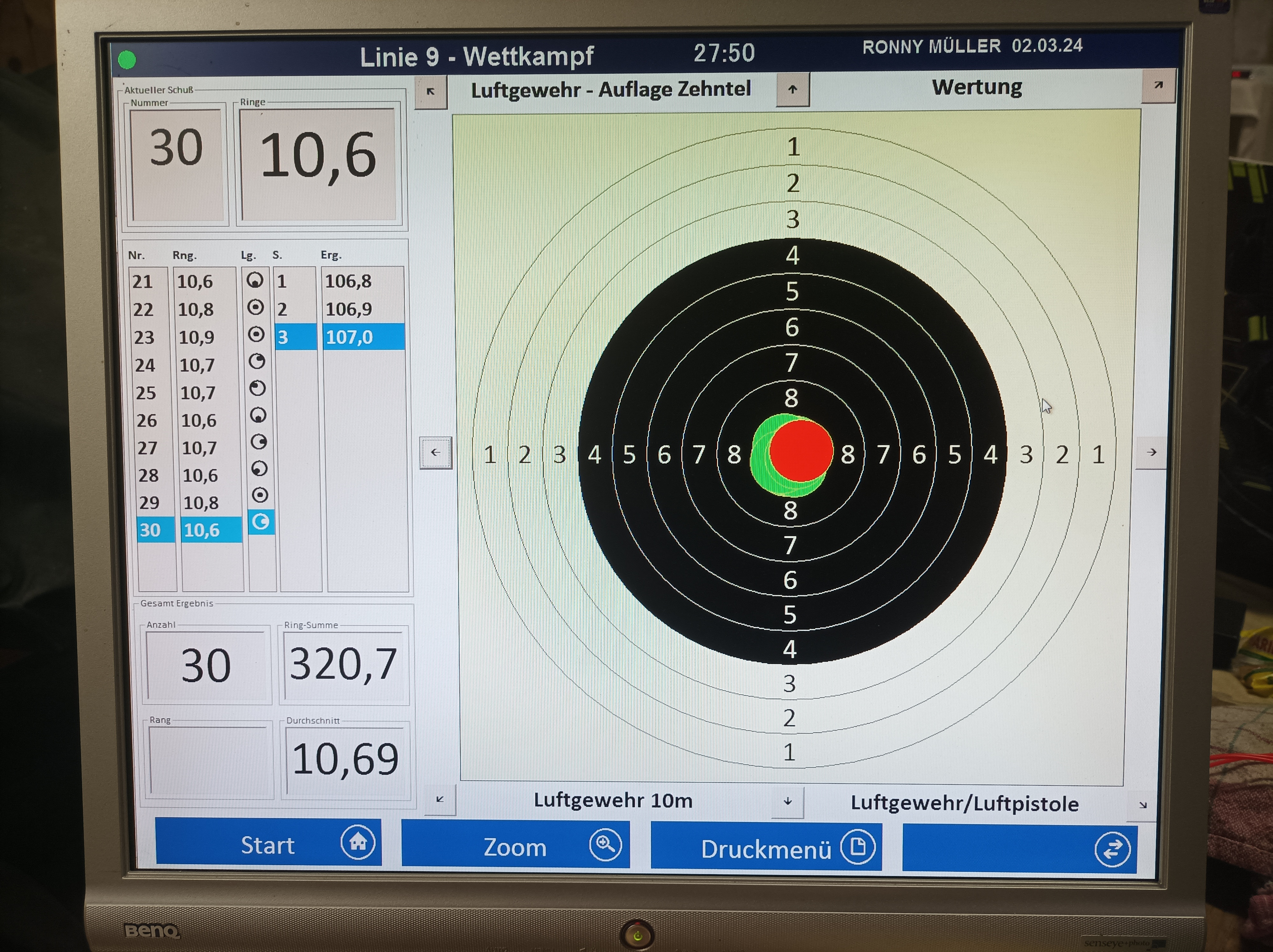 Die Hürde sehe ich bei 321 Ringen. Die hatte ich bis jetzt im Training nur ein Mal.