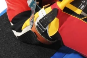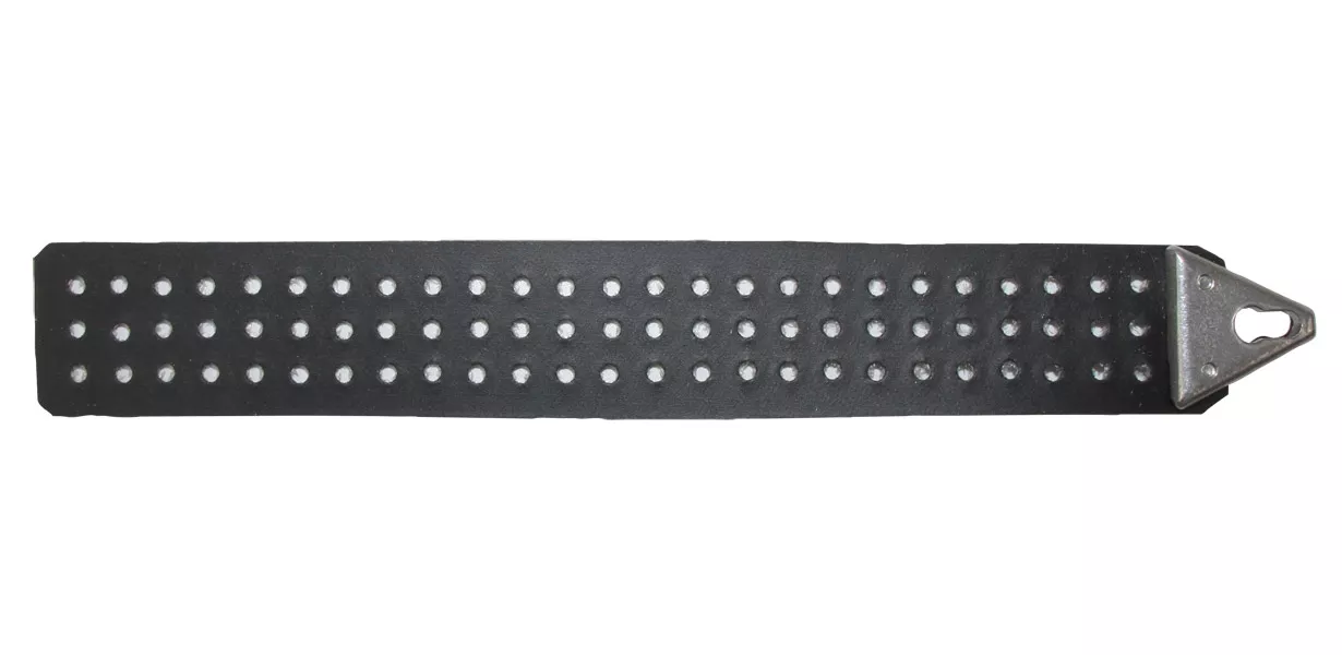 Es kann so aber auch passieren, dass sich der Pulsschlag über den Riemen auf das Gewehr überträgt. Deshalb wird in vielen Lehrbüchern - oft ohne vernünftige Begründung - gefordert, dass der Zug von außen kommen soll. Dazu muss der Riemen aber so an dem Haken fixiert werden, dass sich der Riemen nicht mehr um den Arm drehen kann, zum Beispiel durch einen Schlitz oder eine Art Anschlag, zum Beispiel in Form einer Schraube. Es gibt aber auch andere Lösungen. Zum Beispiel beim AKAH Logic Belt. Da wird ein Plättchen auf den Riemen geschraubt, welches dann in ein Gegenstück an der Armaufhängung eingerastet wird.