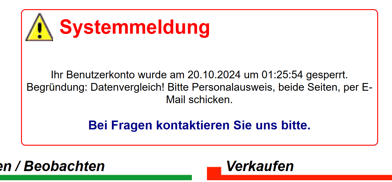 seit mehreren Tagen ist mein eGun Konto gesperrt, mit der Begründung, ich solle mein Perso an sie mailen mit paar Angaben.
