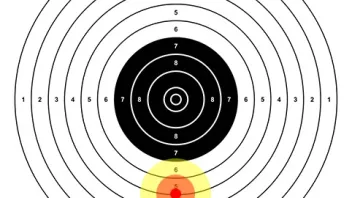 Konnte gestern dann auch nachlesen, dass die Parallelverschiebung (bei richtig ausgerichteter Kimme & Korn) sich weniger stark im Trefferbild auswirkt als ein Kippen oder verkanten. Ich hab mir das dann mal mit Photohop selbst visualisiert und mir den Halteraum für einen Treffer im 9er und 10er Bereich eingezeichnet.